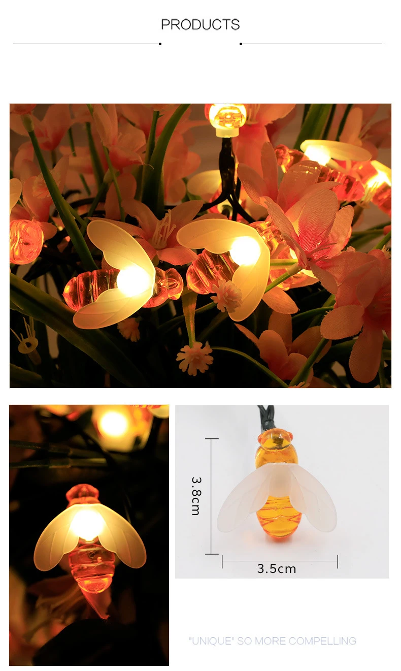 Светодиодная мини-гирлянда на солнечной батарее в форме пчелы