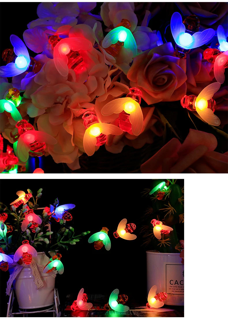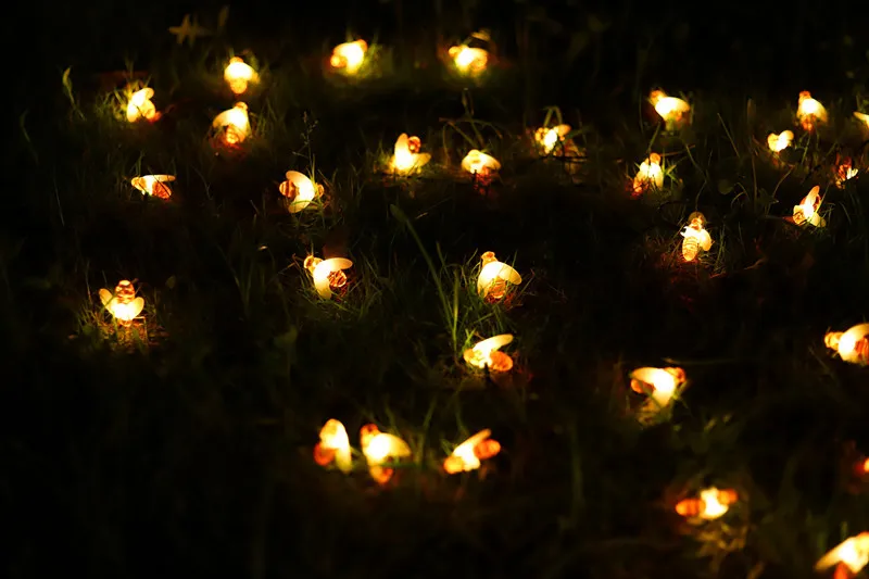 Светодиодная гирлянда с пчелами на солнечной батарее, уличный садовый шнурок для забора, внутреннего дворика, Рождественская лампа, 5 м, 7 м, 12 м