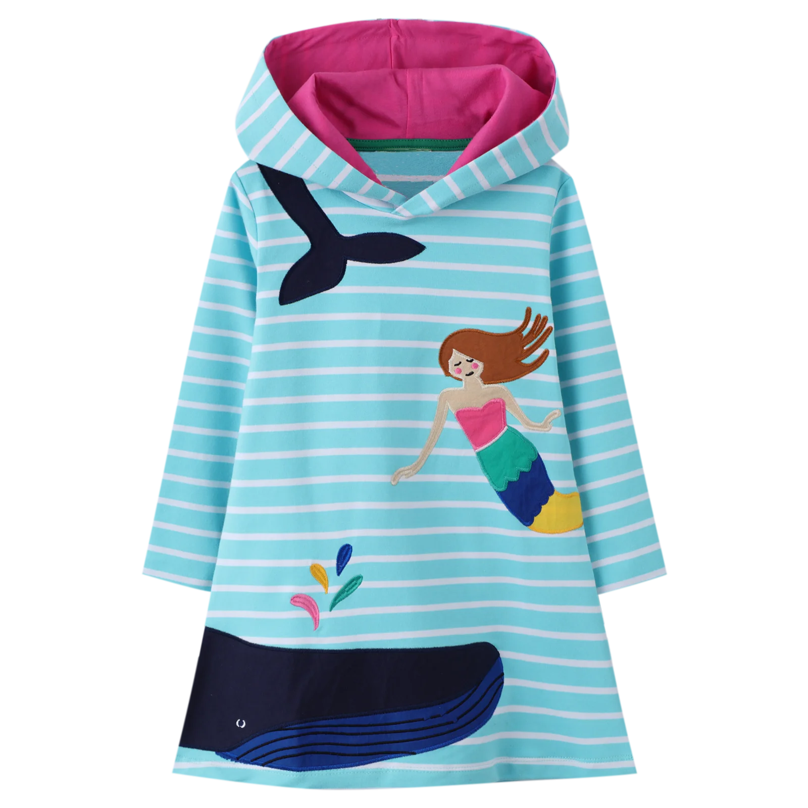 Jumping Metersплатье для девочек; Одежда для малышей; Платья с капюшоном и длинными рукавами для маленьких девочек; Костюм принцессы; Unciorn; Детская одежда