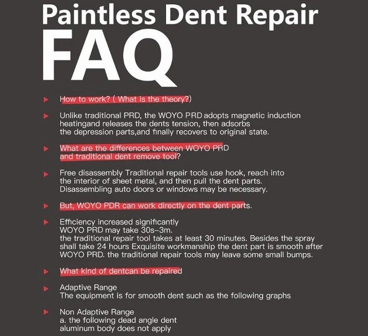 Супер PRDЯвляется фирменной компанией, которая специализируется на безболезненных инструментах для ремонта вмятин, техническом обучении и технической франчайзинге. Наша компания установила исследования и разработки, производство и продажи в качестве одного, стремится к разработке различных ремонтных инструментов, которые не повредят оригинальную краску и просты в эксплуатации. Наша компания сильна в технологии и имеет нашу собственную лабораторию, а также команду разработчиков, которая не только владеет передовыми технологиями и строгим управлением производственным процессом, но и получила ряд национальных патентов на исследования и разработки