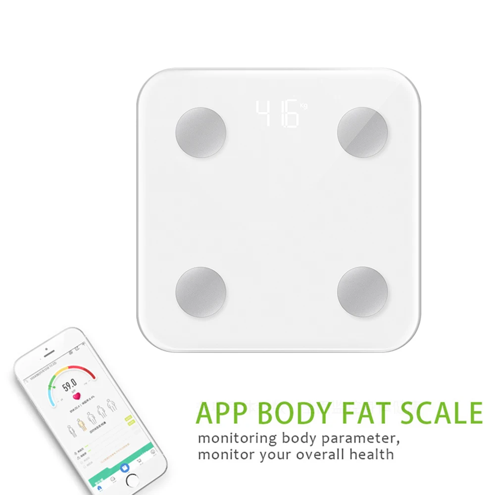 Электронные весы, цифровой прибор для измерения массы тела и жира, с ЖК-дисплеем и закаленным стеклом, Bluetooth