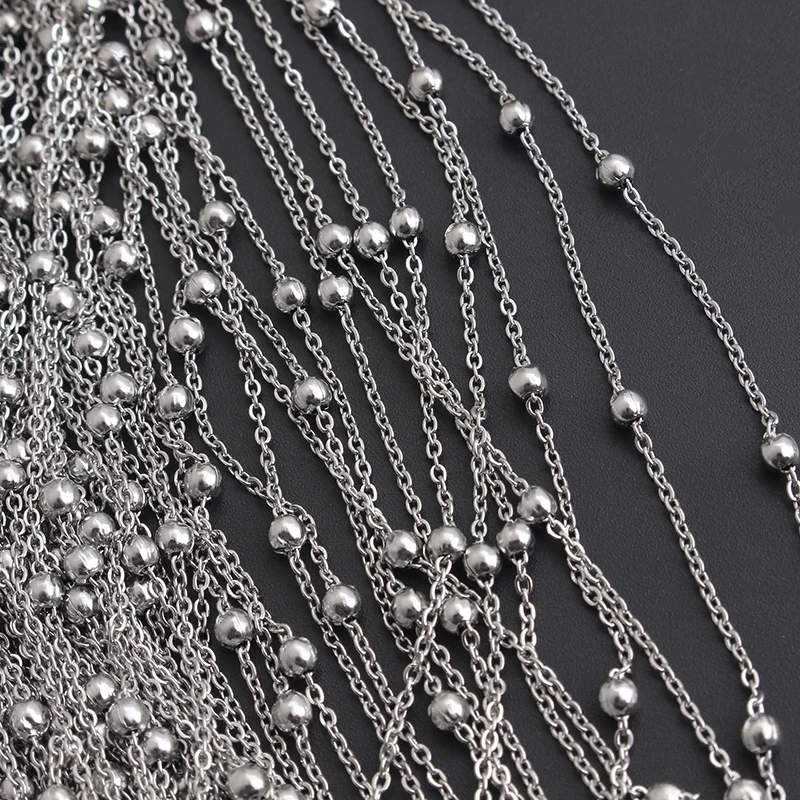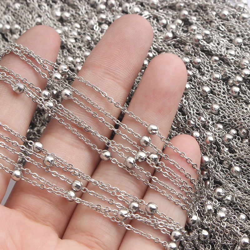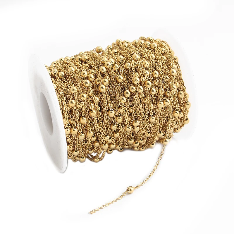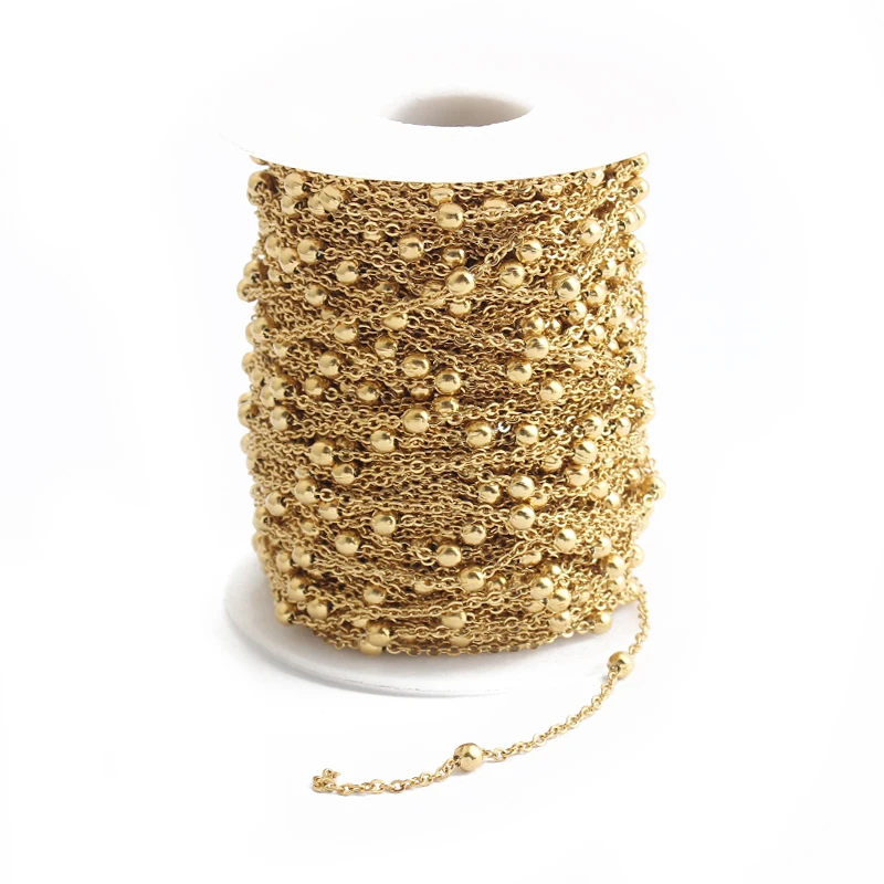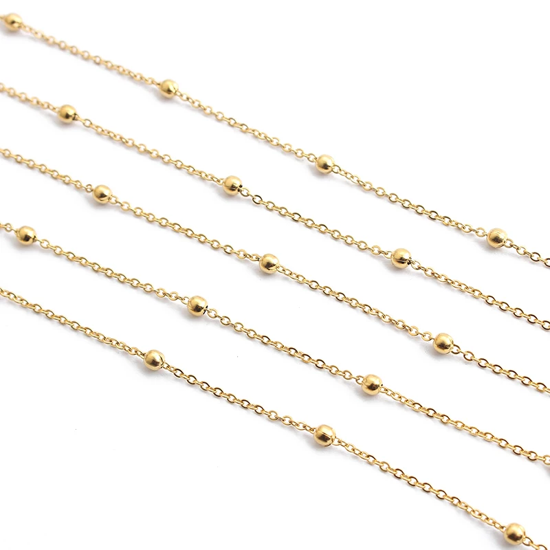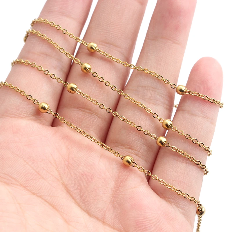 Цепочка Из Нержавеющей Стали с золотыми бусинами, 1 метр, 1,5 мм