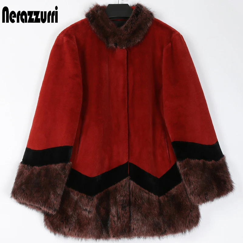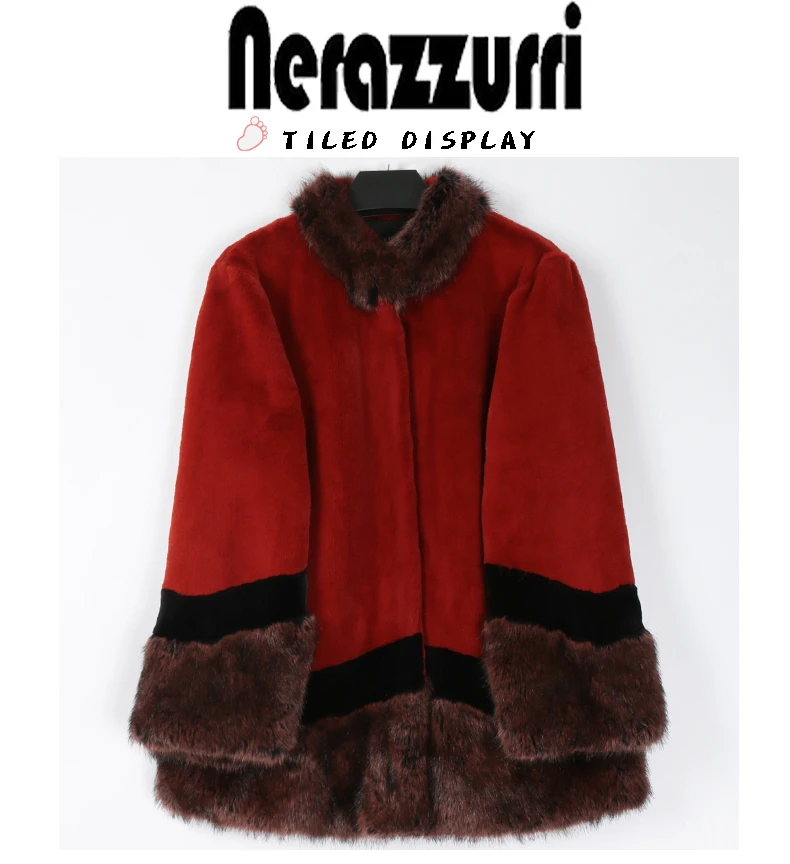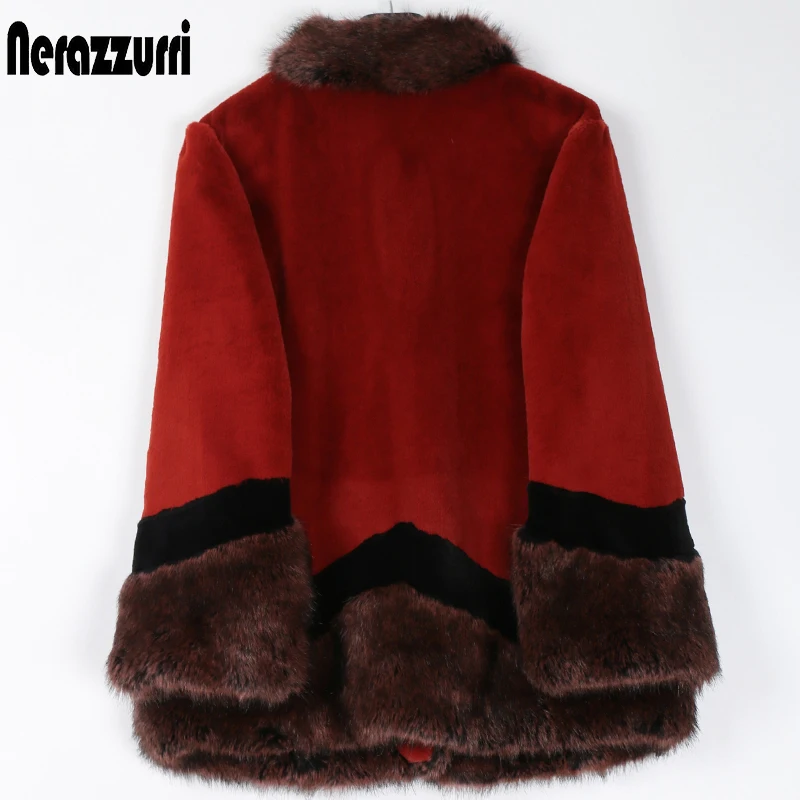 Nerazzurri Пальто из искусств меха в стиле пэчворк женское с пышными рукавами Пушистая куртка женская Женская мода больших размеров Зимняя верхняя одежда женская 2020 6xl 7xl шубка искуственный мех. шуба искусственная