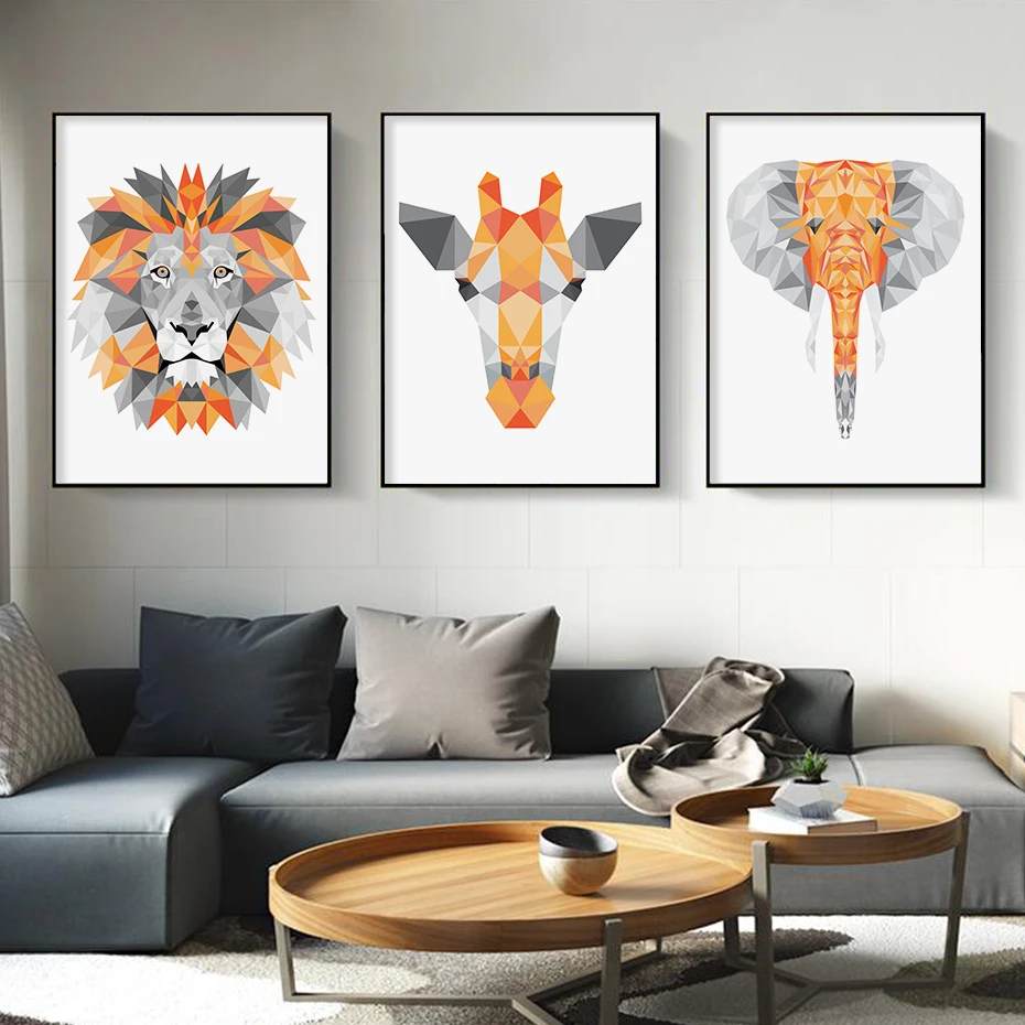 Современные Геометрические Животные Лев Олень слон оранжевый серый настенный художественный постер Картина на холсте картина для гостиной домашний декор