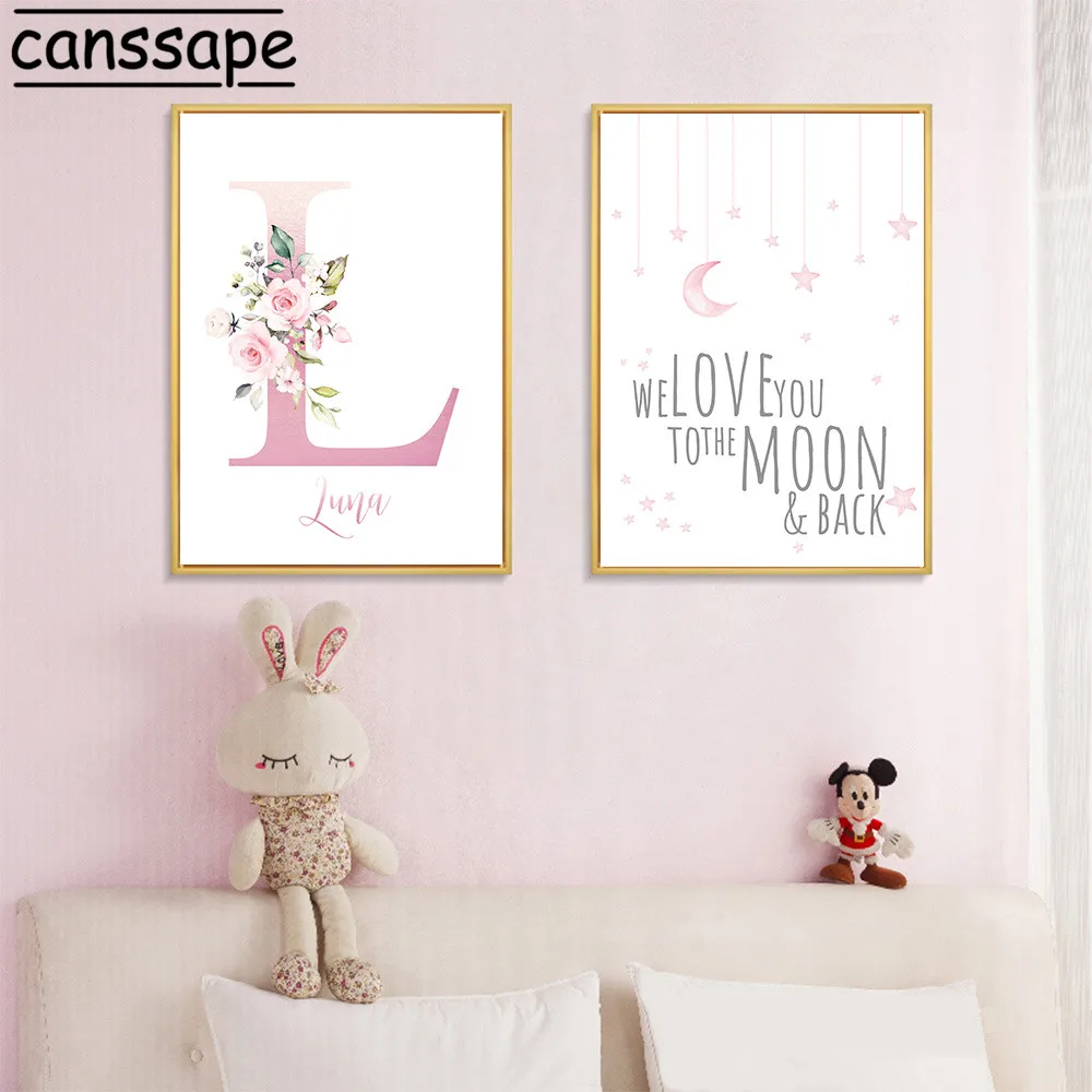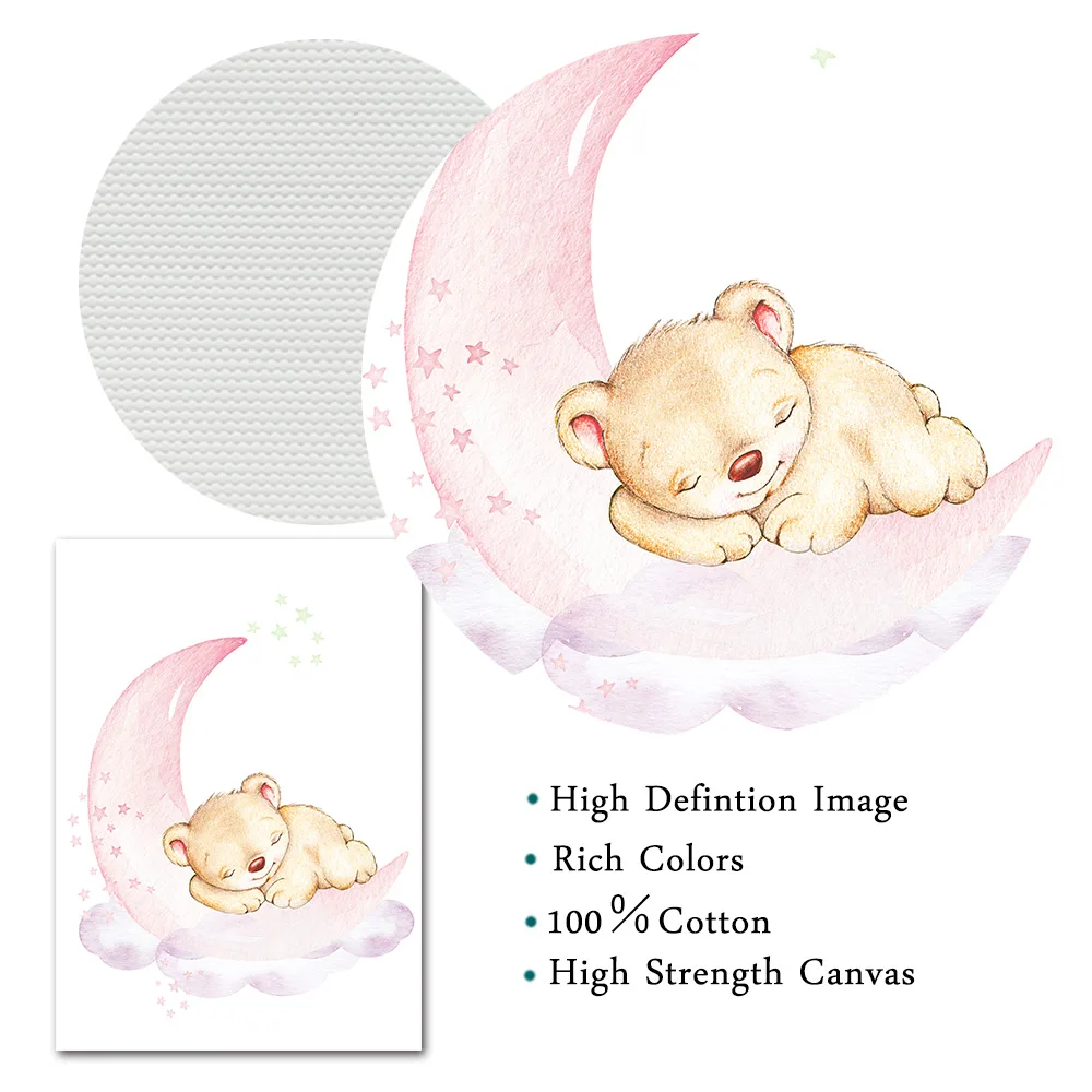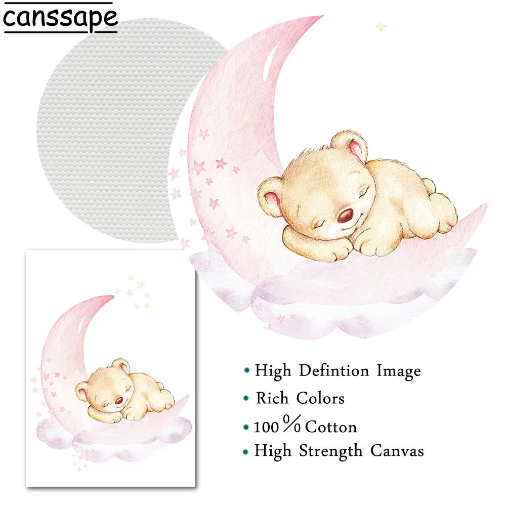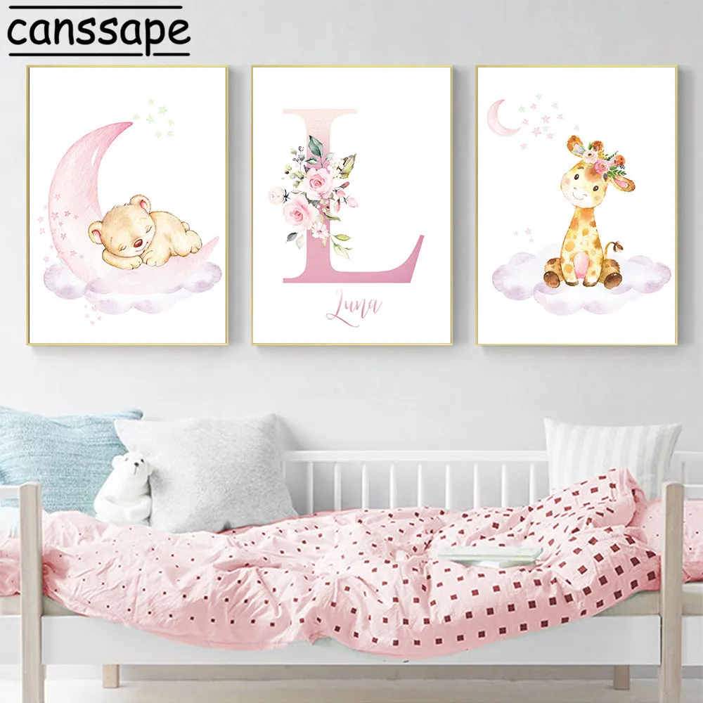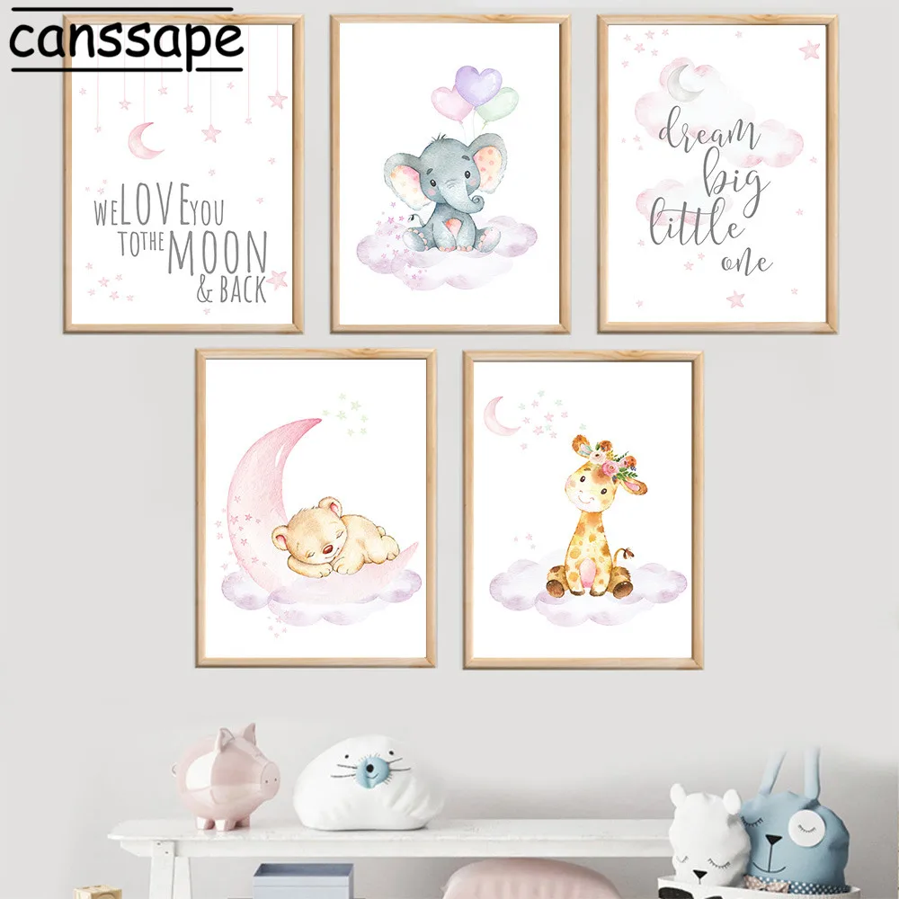 Настенный постер для детской комнаты, рисунок на холсте, слон, медведь, плакаты с именем на заказ, принты с облаками, луной, скандинавские настенные картины, декор для детской комнаты