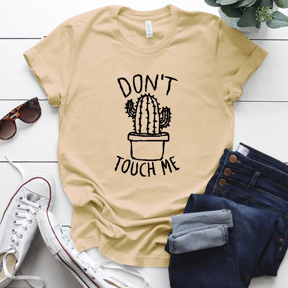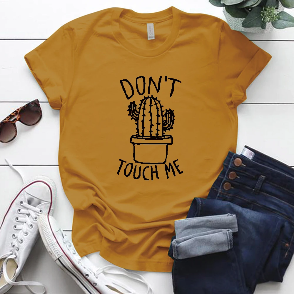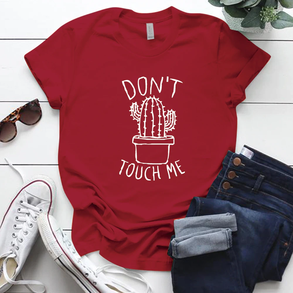 Женские футболки с забавным принтом Don't Touch Me Cactus, повседневные футболки с круглым вырезом, размера плюс, в стиле Харадзюку, милые женские футболки