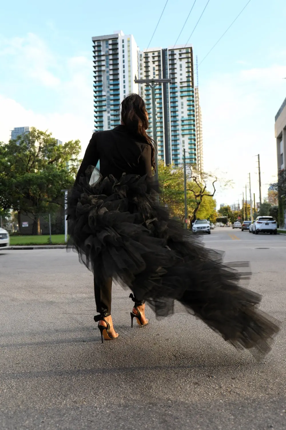 Женская длинная юбка-пачка из тюля, черная юбка со съемным шлейфом, оборками и многоярусной юбкой с запахом, выполненная на заказ эластичная юбка-пачка для невесты