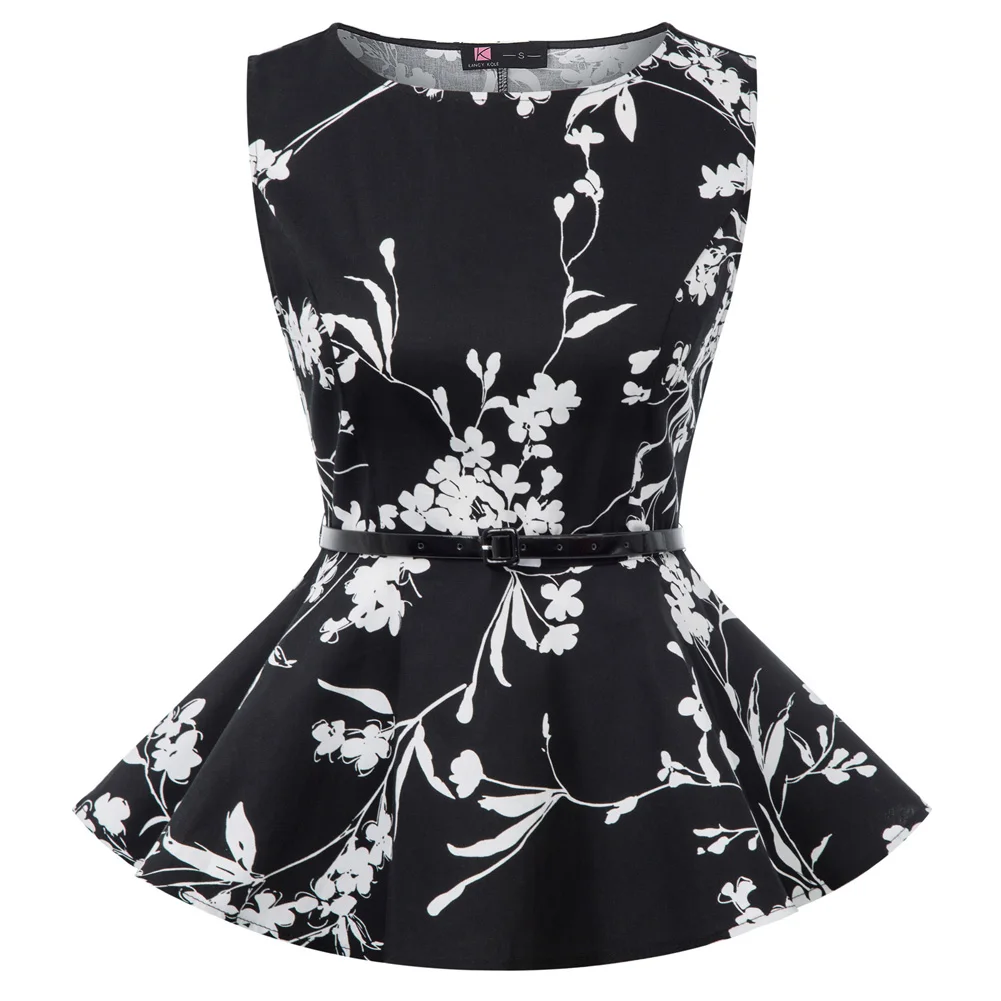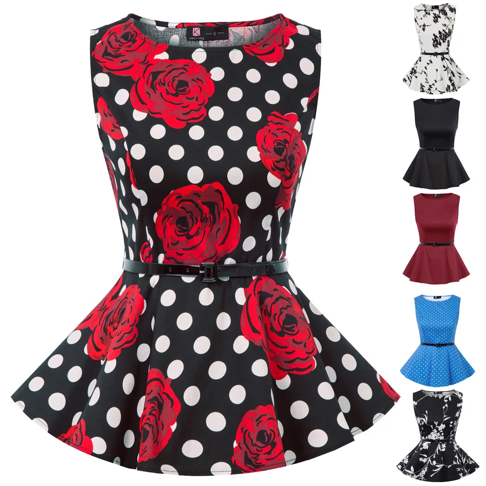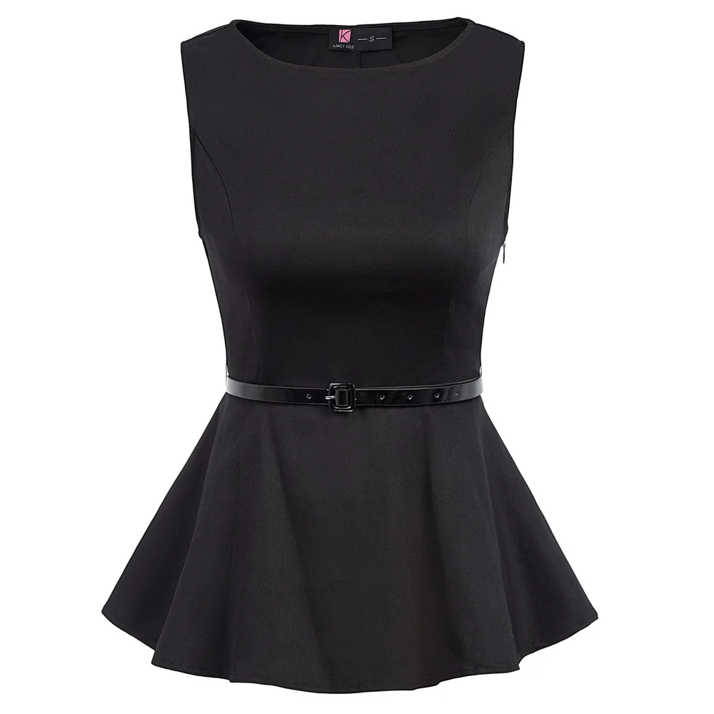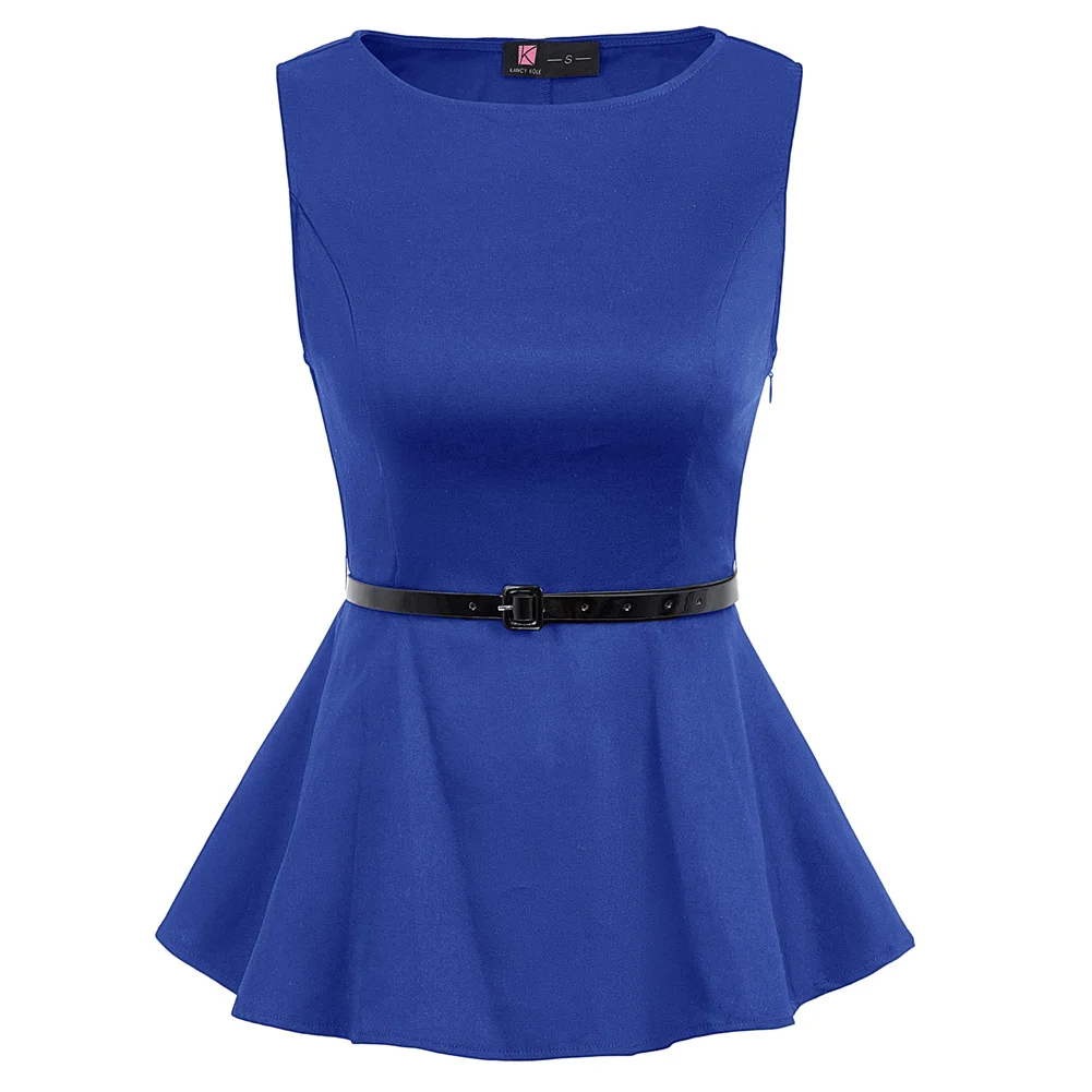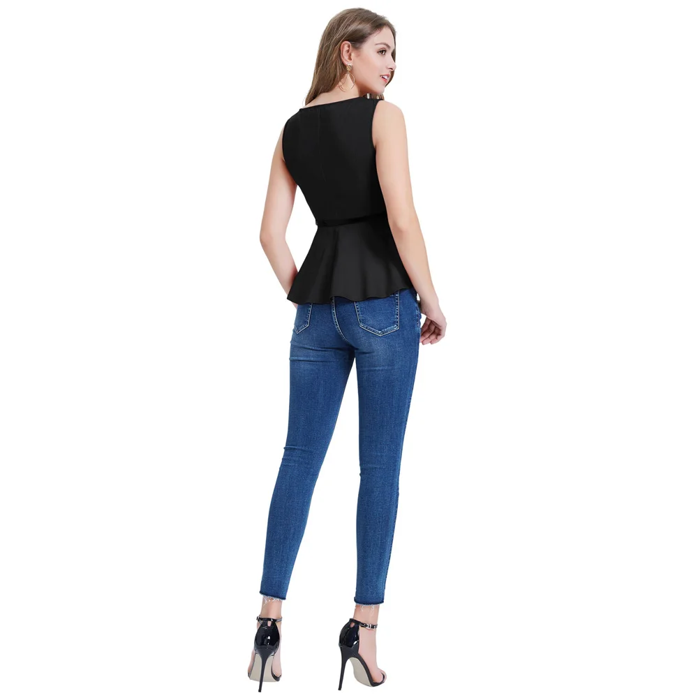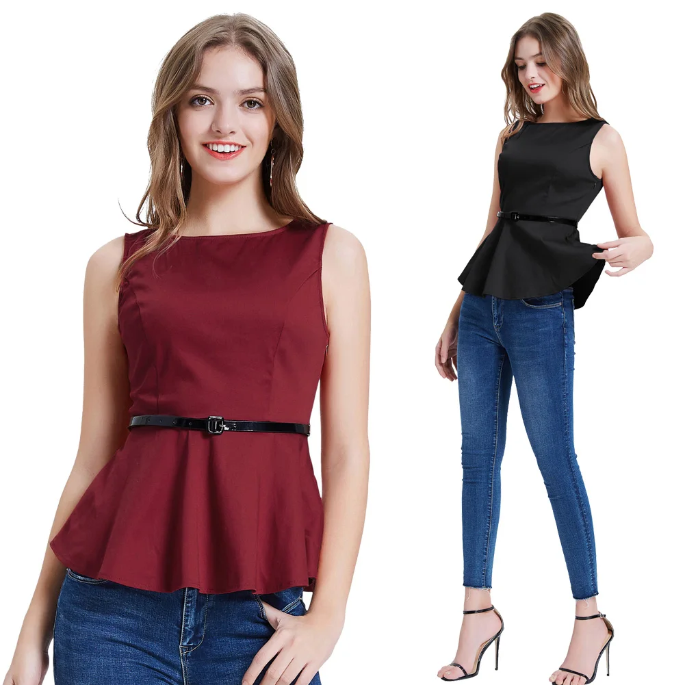 Пикантные рубашки с вырезом лодочкой и баской; Элегантные женские вечерние повседневные блузки без рукавов