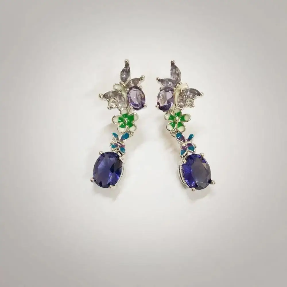 Богемные женские серьги-капли с фиолетовым кристаллом и цветочным узором, элегантные ювелирные изделия для банкета