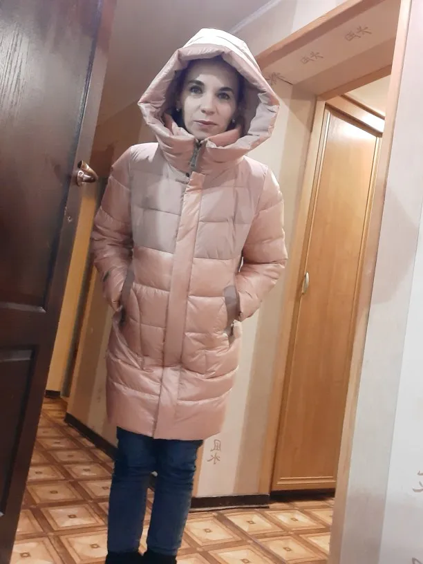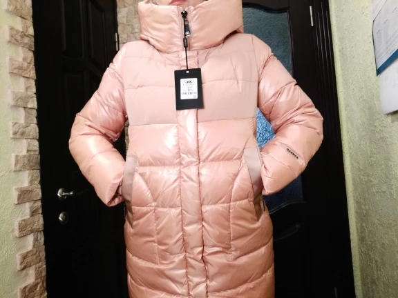 Получила пуховик очень быстро. Доставка курьером на дом. Заказом очень довольна. Фасон прямой как я и хотела, цвет красивый розовый, чуть-чуть в коралл. Достоинства: большие карманы с теплой подкладкой, теплый пуховик, но не на морозы, красивый и удобный. Самое главное, что ткань водонепроницаемая, попадала в мокрый снег, отряхнула и он сухой. Здоровья и процветания произволителям! И спасибо продавцам!