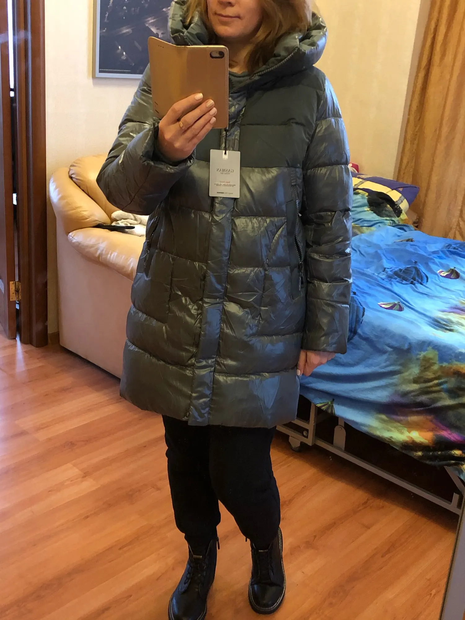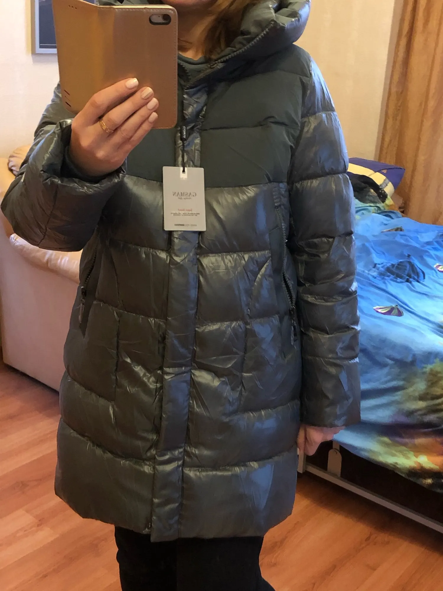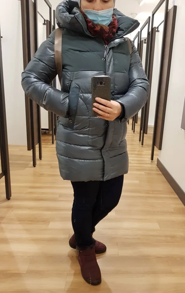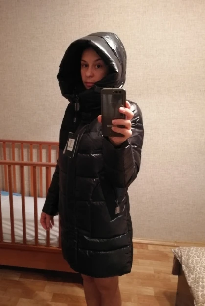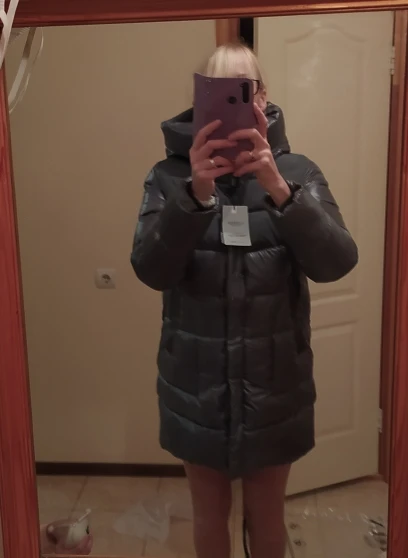 Куртка как на фото, очень её ждала, пришла из Китая быстро, получала на кассе 5ки, качество понравилось, тёплая на московскую зиму подойдёт, но мне не подошла модель, на мою фигуру (параметры 86*74*96см) куртка р42 не села, куртка прямого кроя не приталенная, в груди и талии свободна, в бёдрах туго, прям в облипочку, попу на рост 164 прикрывает, и я бы её оставила, если бы не капюшон, он очень большой и широкий, если носить без шапки, то будет продуваться, при этом нависать на глаза, внутри есть кулиски их можно затянуть, но тогда спереди остаётся довольно широкий козырёк капюшона, который напрашивается, чтоб его подвернули, а отвернув вид не очень, я зимой шапки не ношу и всегда одеваю капюшон, поэтому мне было бы не удобно с этим, если вы носите шапку и капюшон как таковой вам не нужен, то куртку рекомендую.