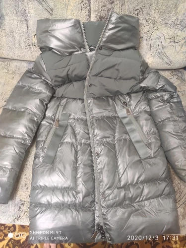 Сегодня получила куртку для внучки. Покупкой остались очень довольны. Куртка лёгкая, мягкая, видимо тёплая, сшита очень качественно. Все строчки ровные. Очень порадовала фарнитура. Молнии серьёзные. В карманах мягкая тканюшка. Есть один внутренний карман на пуговичке. Сочетание блестящей и матовой ткани делает куртку оригинальной. На параметры ОГ-80, ОБ-90 заказали размер М и не пожалели. Курка смотрится объёмно. Можно одеть вниз свитер. В качестве подарка продавец прислал розовый шарф. Были бы больше рады если бы продавец при покупке учёл купон на три доллара, присланные за предыдущую покупку. Доставка быстрая в течении 12 дней. Это вторая покупка в данном магазине. Будем делать и в дальнейшем покупки в данном магазине.