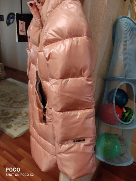 Красивая зимняя куртка Цвет-нежно розовый Длина куртки-84см Материал-100% полиэстер Размер взяла Л(46)- на рост 170см,бедра 96см, бюст 89см и плечи 39 см,куртка села четко по размеру, свободная,как раз что бы одеть под куртку свитерок. По бокам есть карманы- они на молнии,внутри флис,греют руки. Есть глубокий капюшон и высокий ворот,даже шарф не нужен.Капюшон не снимается. На левом рукаве есть нашивка GASMAN. Закрывается куртка на молнии + кнопки. На рукавах,внутри,есть резинки,не будет задувать. Очень красивый цвет,такой нежный. Куртка теплая,на зиму то что надо. Доставка 20 дней курьером Мист Експресс. Рекомендую!