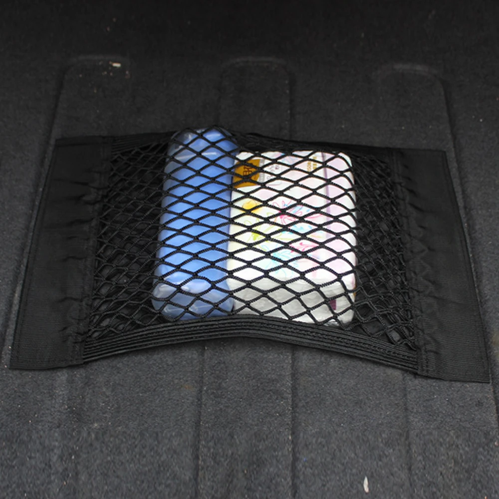 Сетчатая Сумка для хранения в багажнике, эластичная Сетчатая Сумка, автомобильный держатель на Клейкой Ленте, карманный автомобильный органайзер, сетка для хранения, Черный Автомобильный Органайзер