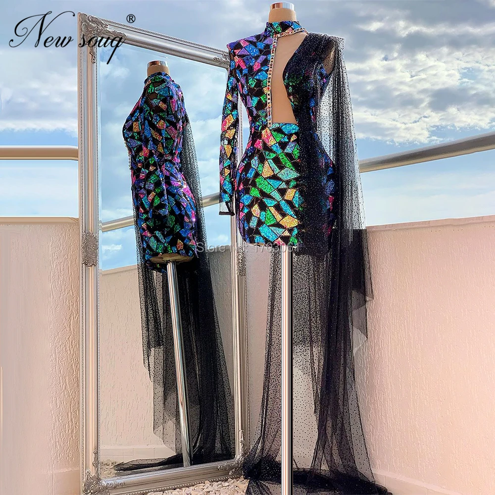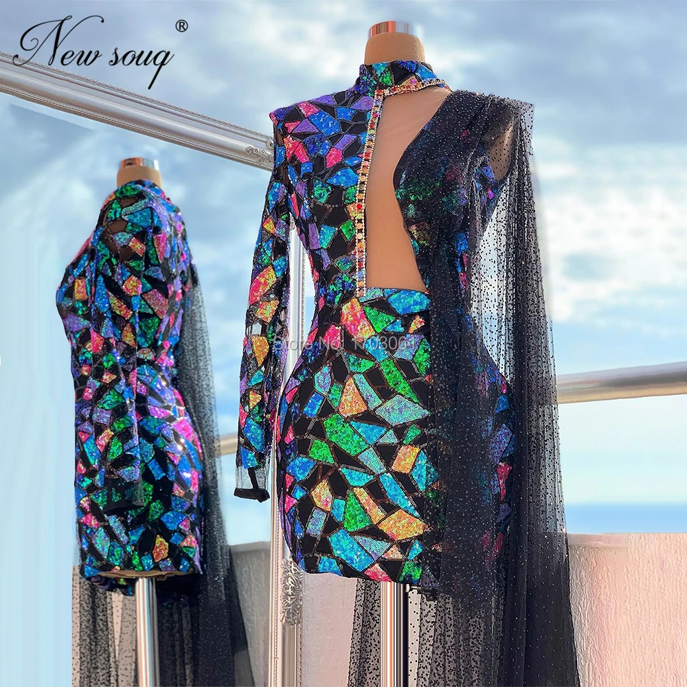 2020 блестящее разноцветное платье для выпускного вечера, короткое иллюзионное вечернее платье с красной ковровой дорожкой для девочек, для конкурса, вечеринки, вечерние платья Среднего Востока