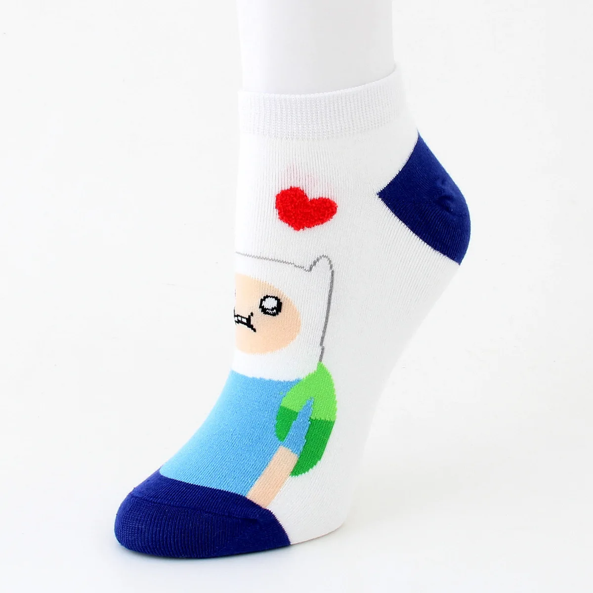 Женские Носки с рисунком аниме, хлопковые носки до щиколотки, женские забавные приключения с Финном и Джейком, милые носки для весны и лета