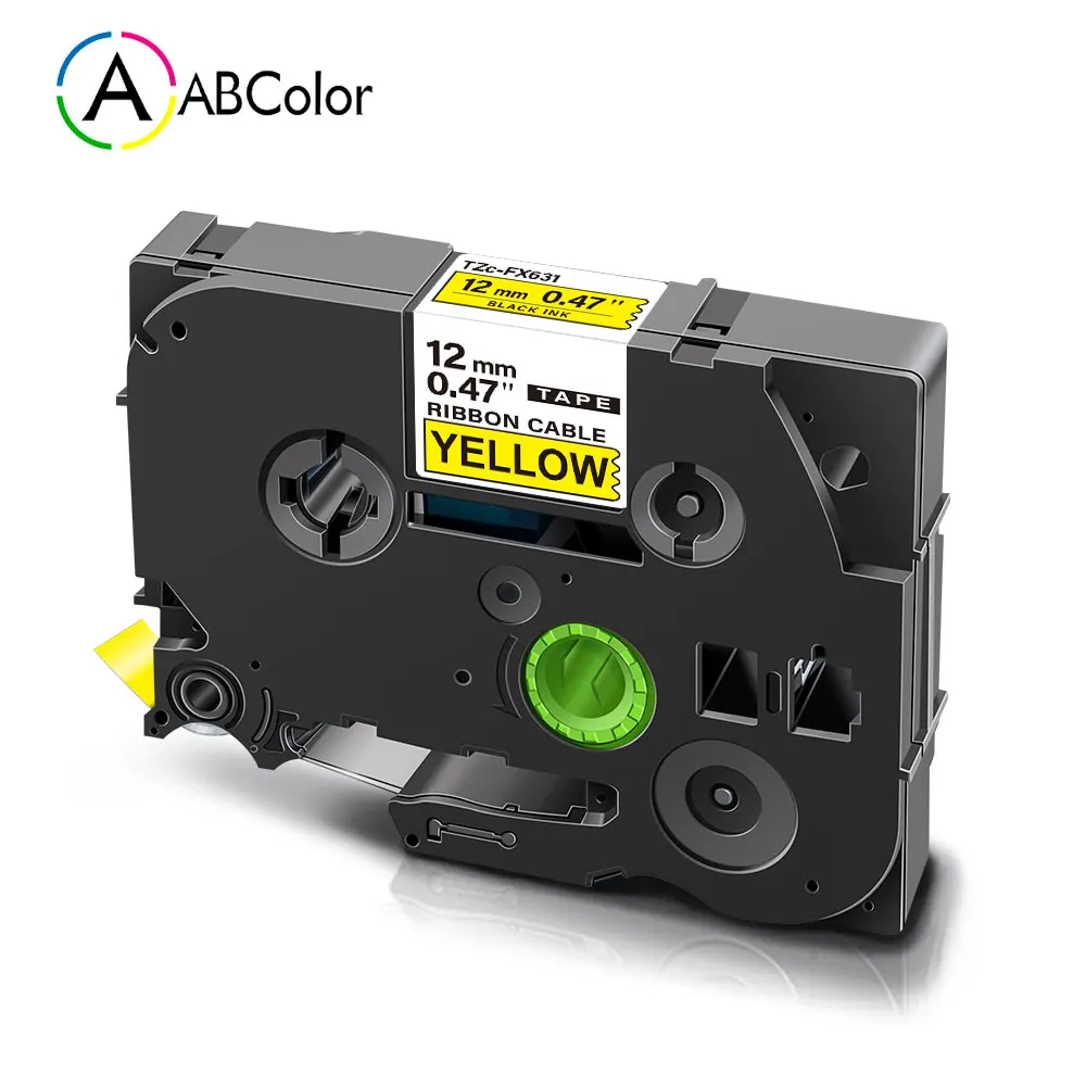 Этикетка 12 мм для гибкой идентификационной ленты, совместимая с FX631, FX231, FX221, FX621, FX211, FX611, черная на желтом кабеле, маркировка для этикеток