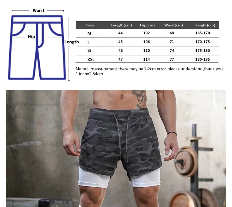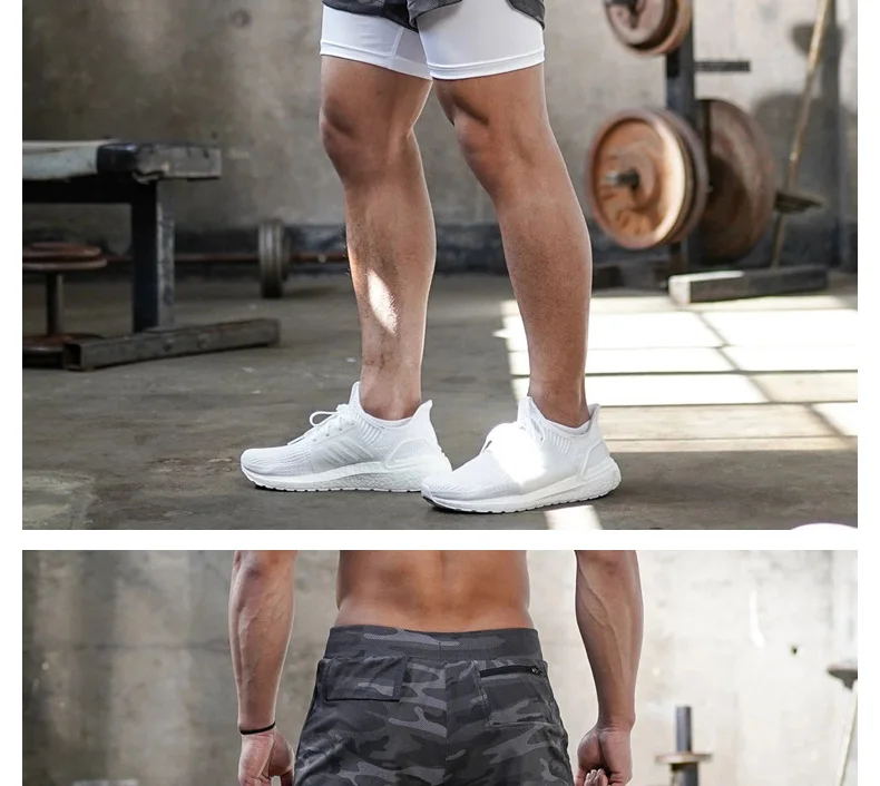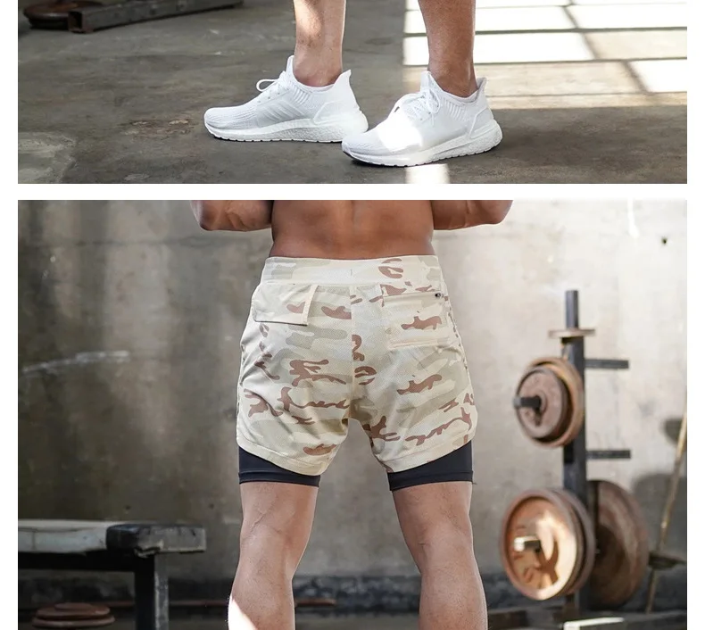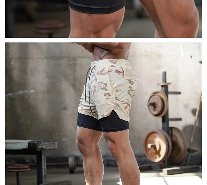 Мужские камуфляжные шорты для бега, 2 в 1, быстросохнущие спортивны...