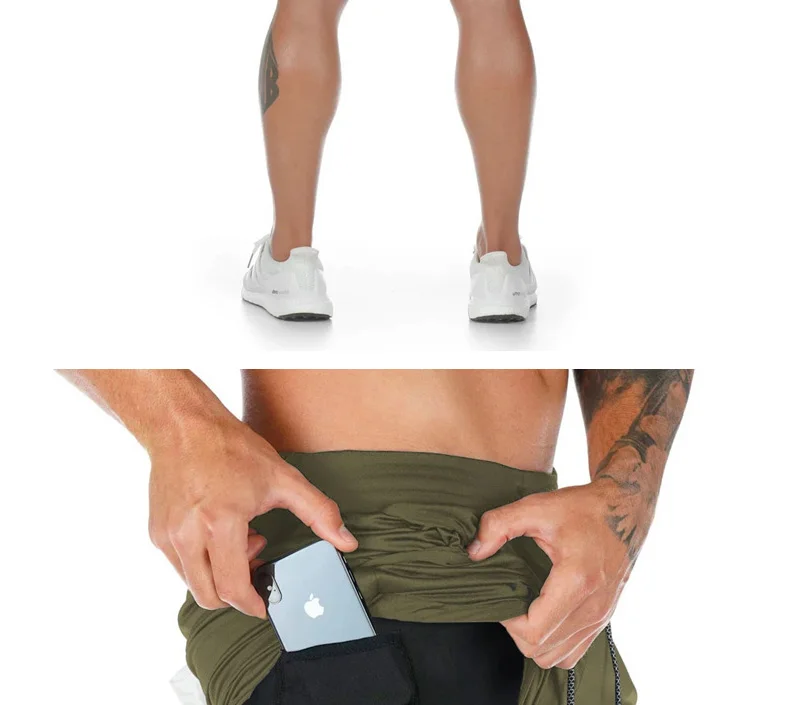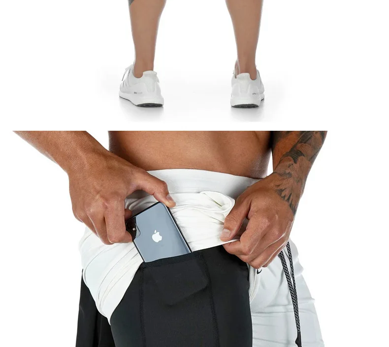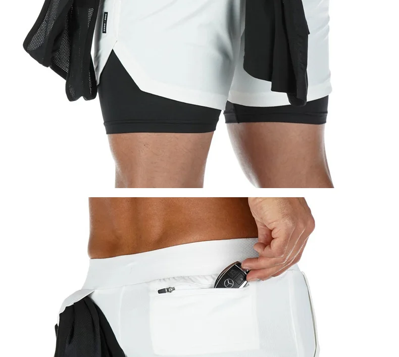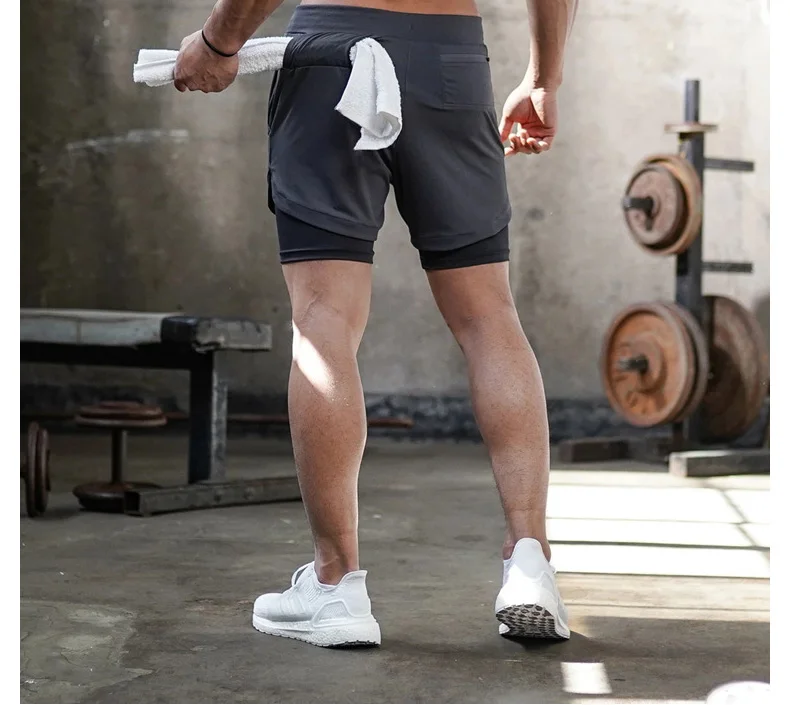 Мужские шорты 2 в 1 для бега, фитнеса, тренировок, быстросохнущие