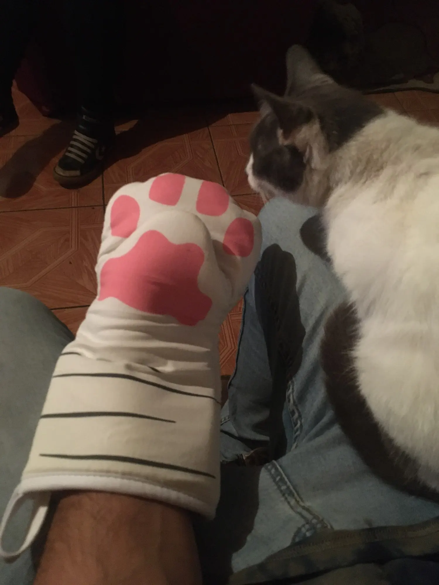 Перчатки такие же, как и у меня, но они застряли на моем пятке, потому что они прислали мне только одну. Жаль.
