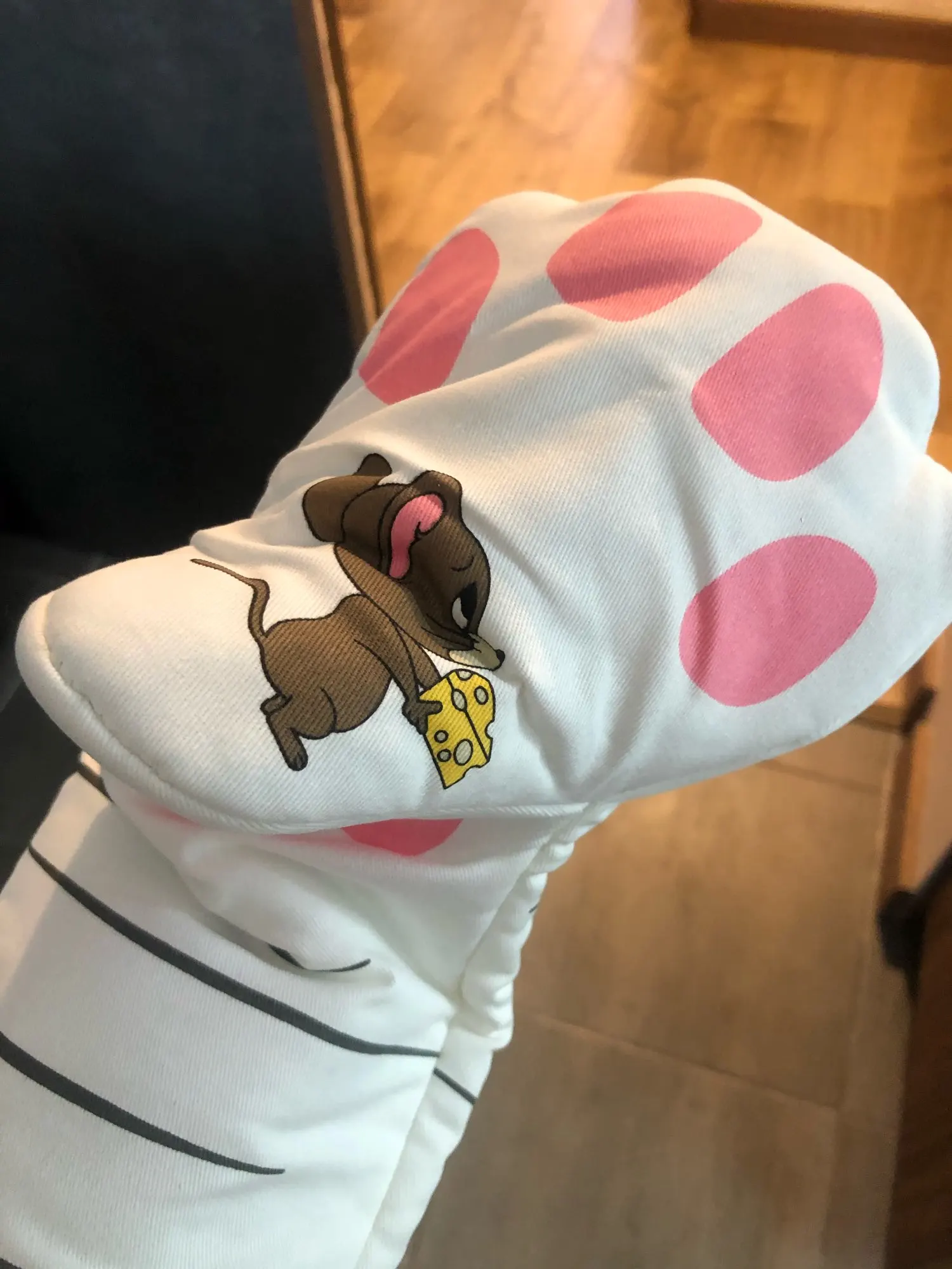 Перчатки-митенки из хлопка, с объемными мультяшными кошачьими лапками, длинные, для запекания, термостойкие, Нескользящие, для микроволновой печи, новинка 2020
