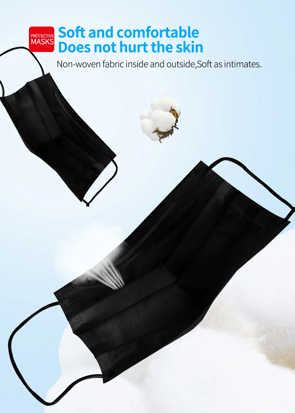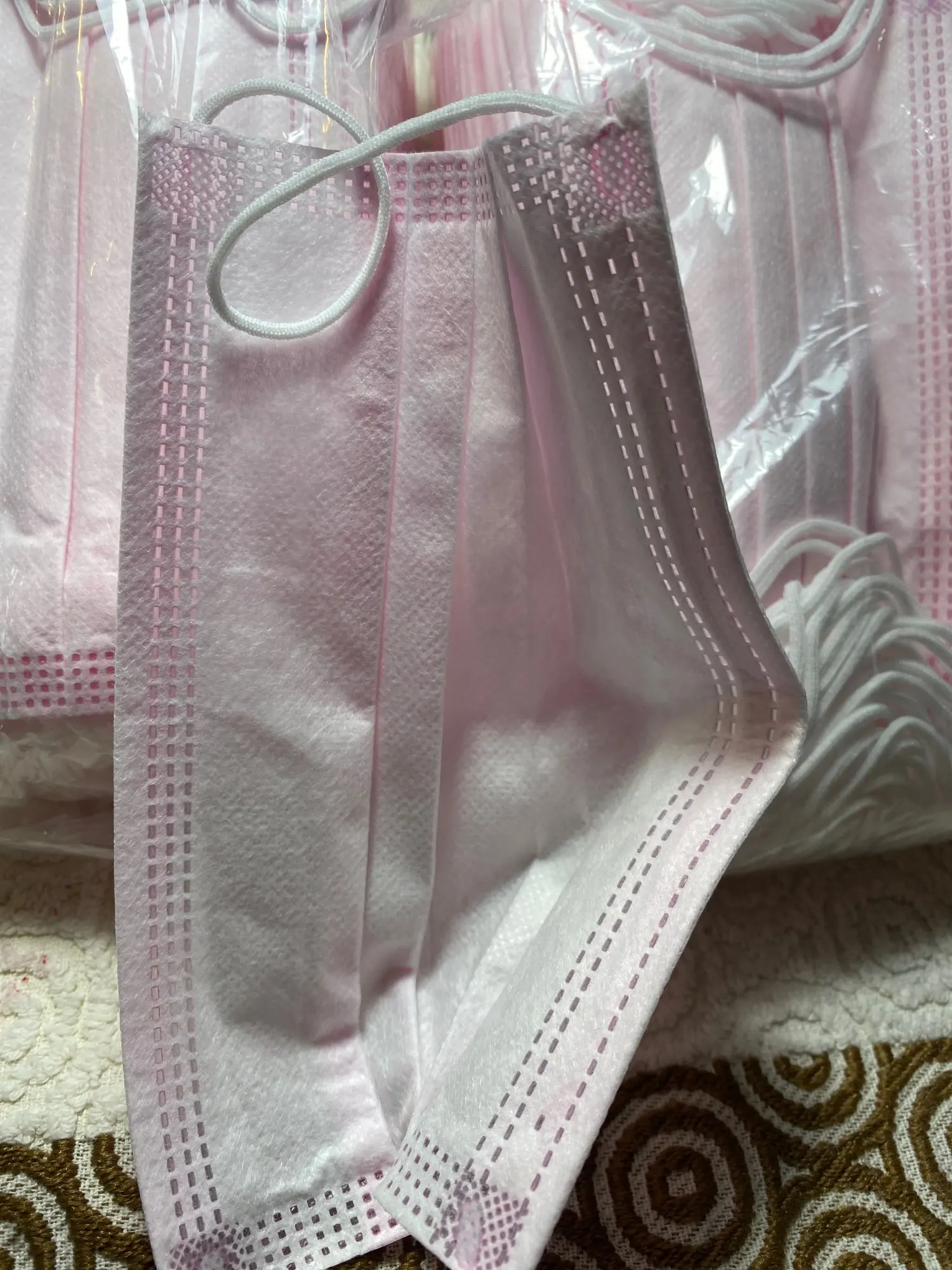 Маски прибыли в установленные сроки. Они выглядят хорошим качеством, а внутренняя ткань обычно не оставляет ворса, которая очень неприятна для носа