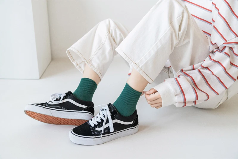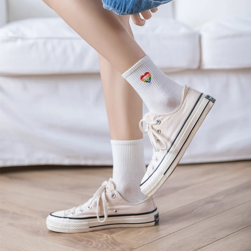Носки женские в японском стиле, хлопковые однотонные с рисунком клу...