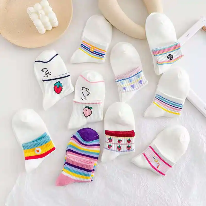 Носки женские хлопковые повседневные карамельных цветов, 10 парупаковка