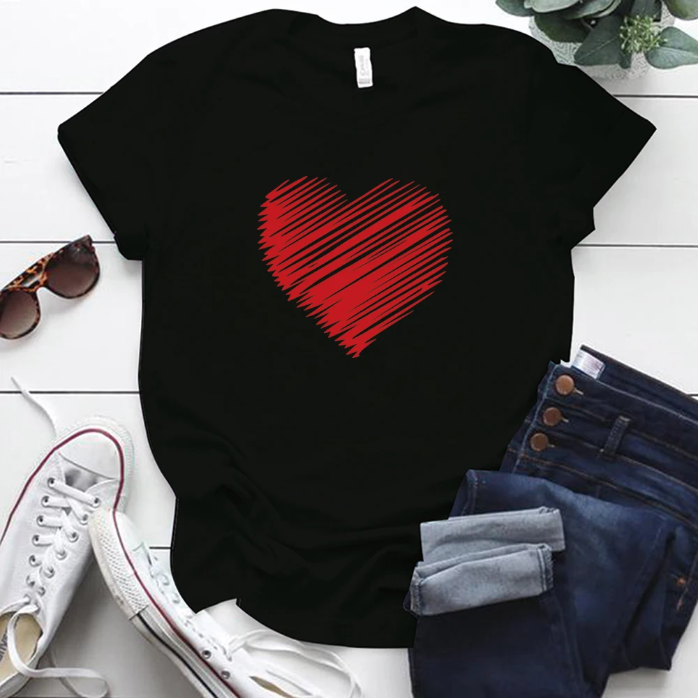 Женская футболка с коротким рукавом, футболка оверсайз в стиле Харадзюку с круглым вырезом, футболка в уличном стиле, принт красное сердце