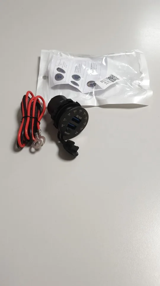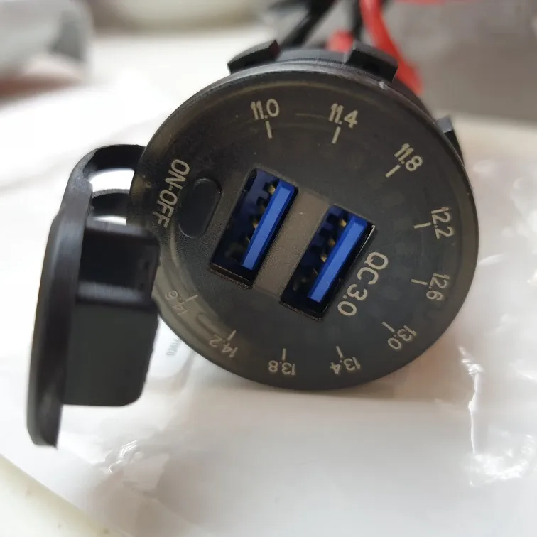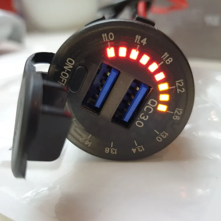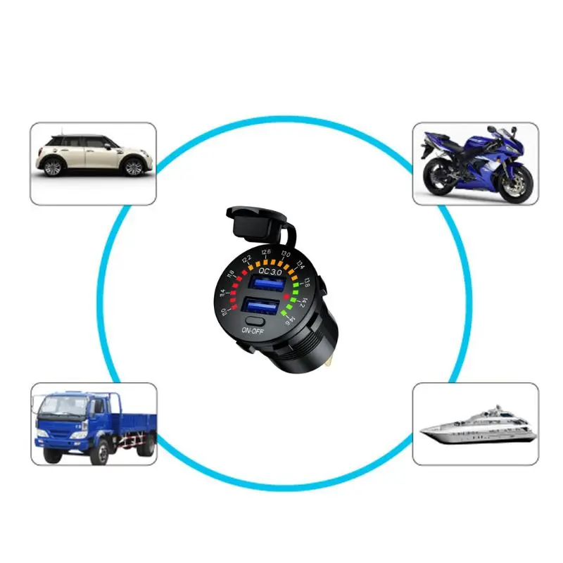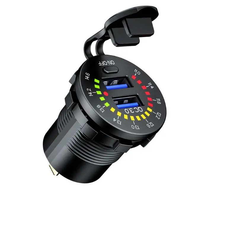 Автомобильное зарядное устройство с двумя USB-разъемами, 12 В, 24 В, QC 3,0, водонепроницаемое, 18 Вт, USB-выход, быстрая зарядка светодиодный ным вольтметром, выключателем, кабелем питания