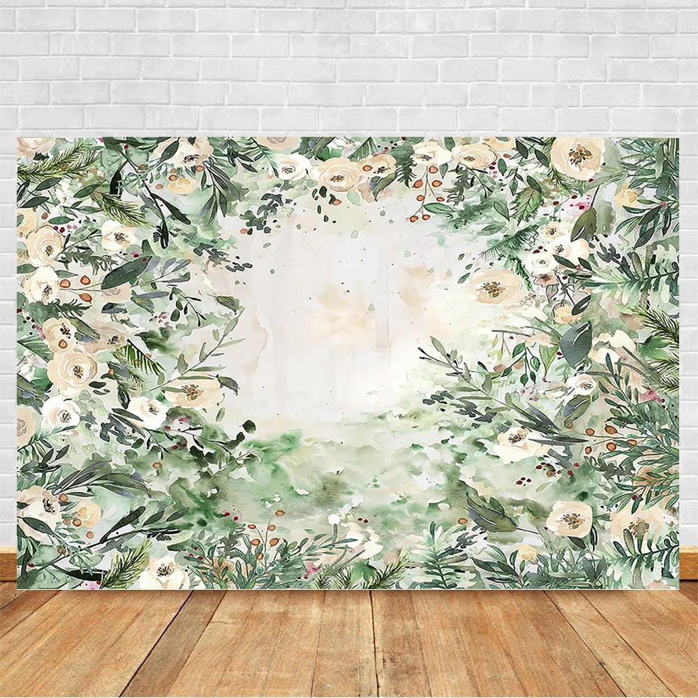 Фон для фотосъемки с изображением зеленой травы, цветов, розы, белы...