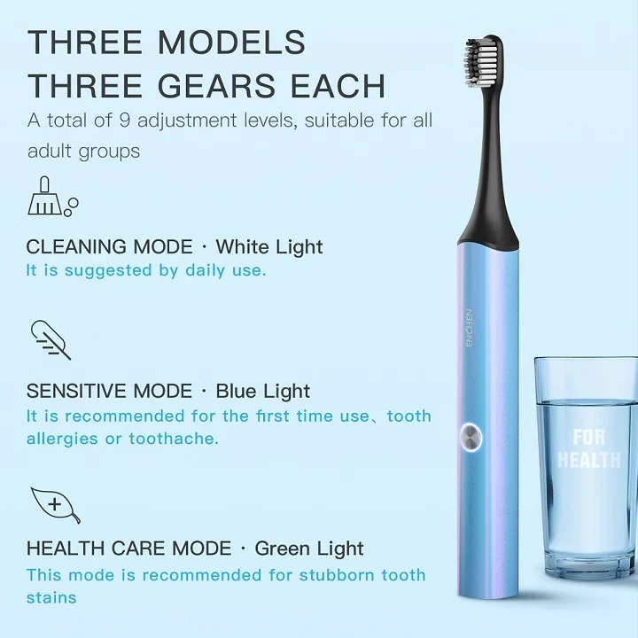 Оригинальная электрическая зубная щетка ENCHEN Aurora T + Sonic IPX7, водонепроницаемая, перезаряжаемая, для взрослых
