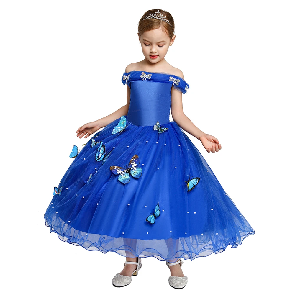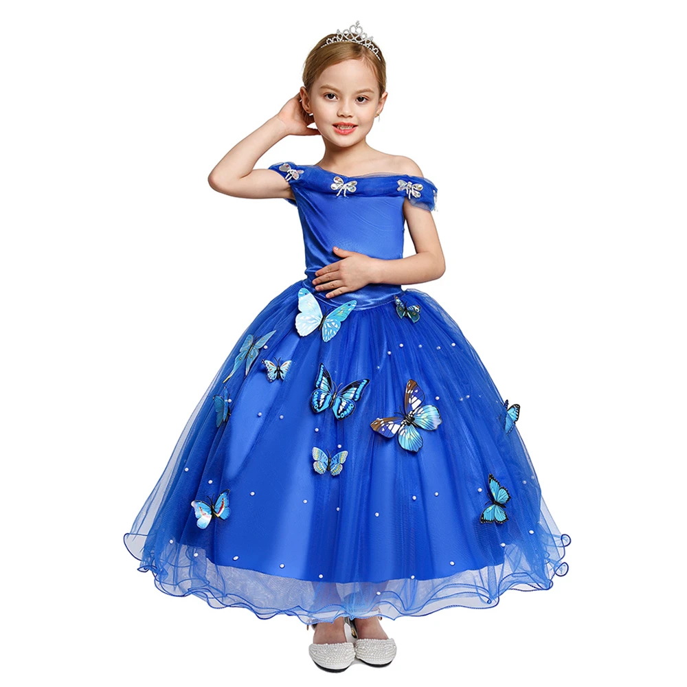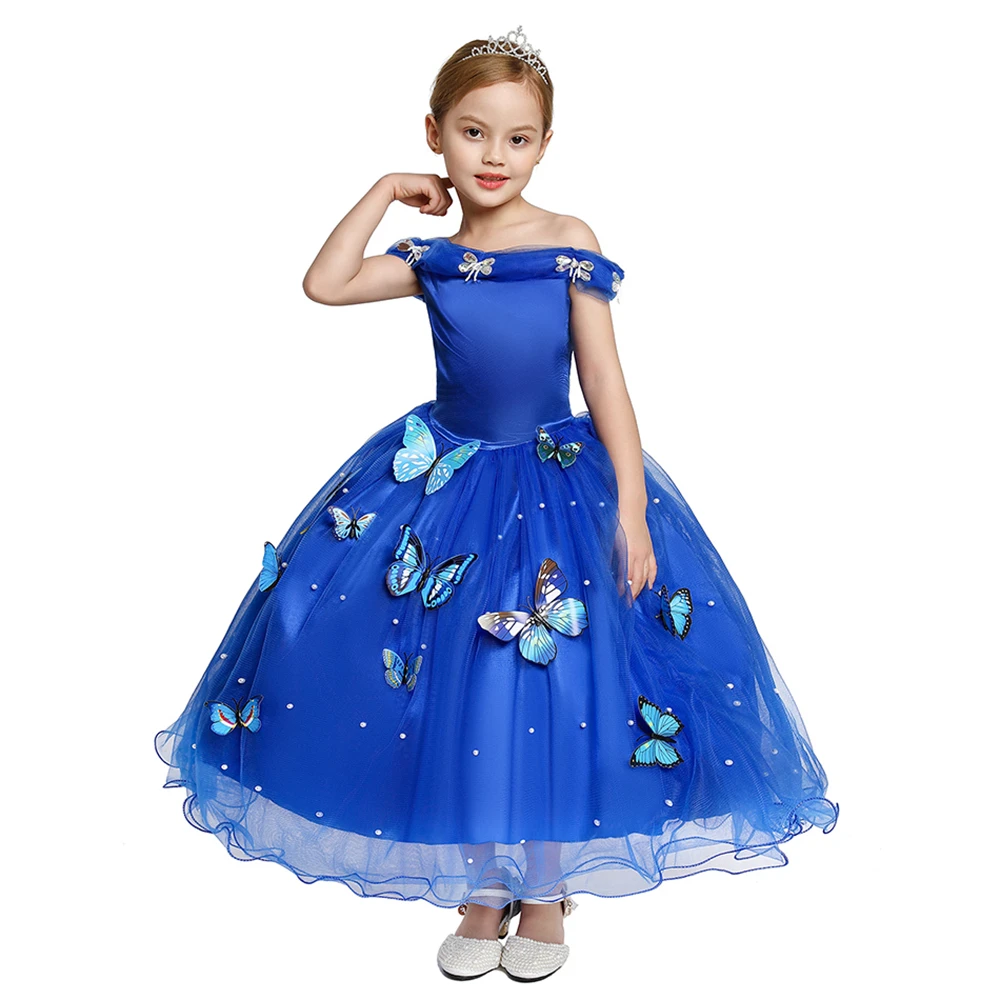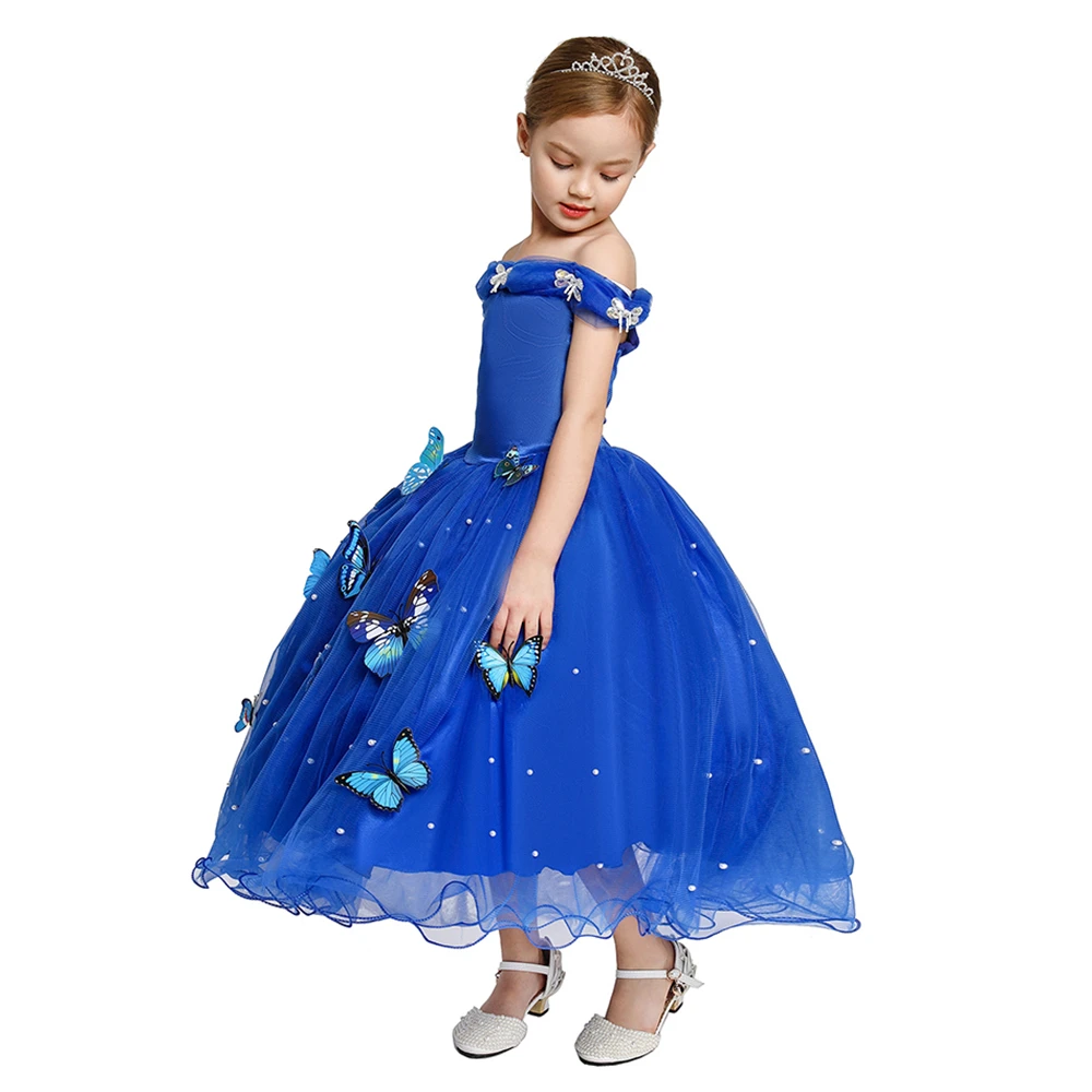 Платье принцессы Детское, на Хэллоуин, Сетчатое, синее