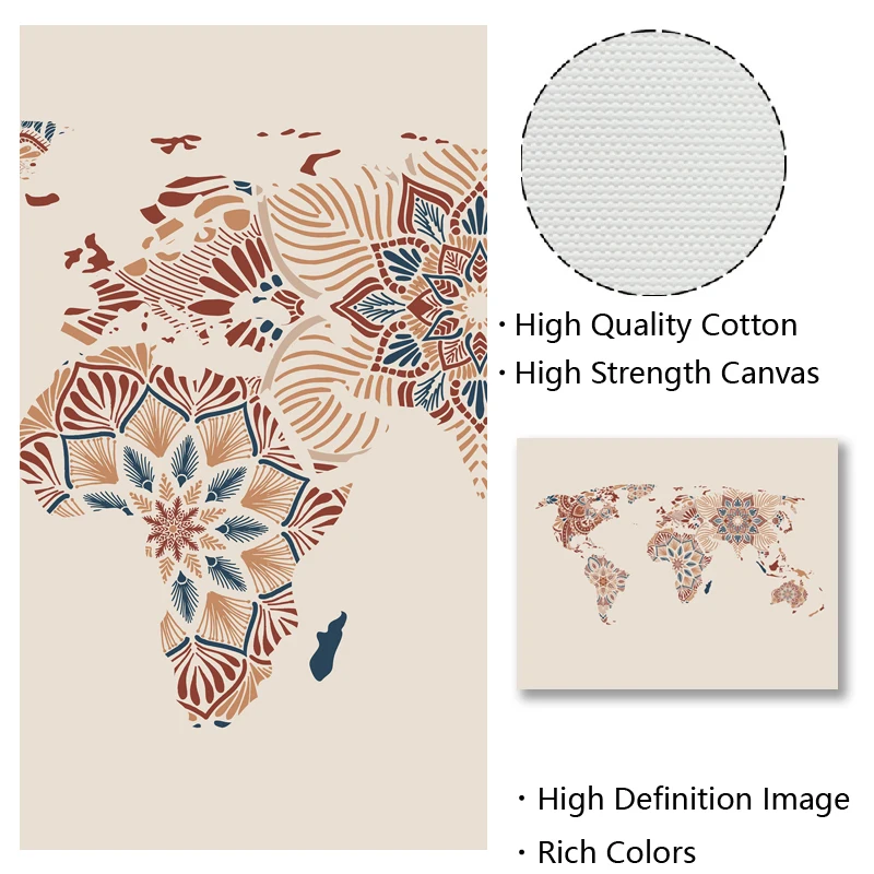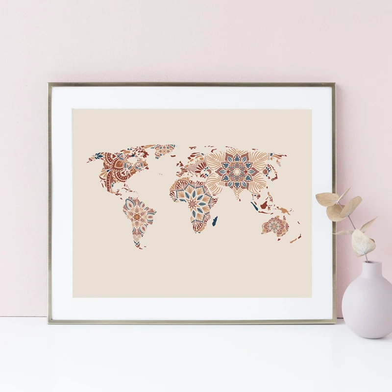 Постер с изображением карты мира в стиле бохо, Терракотовая карта нейтральных цветов для путешествий, Картина на холсте, Настенная картина для декора гостиной