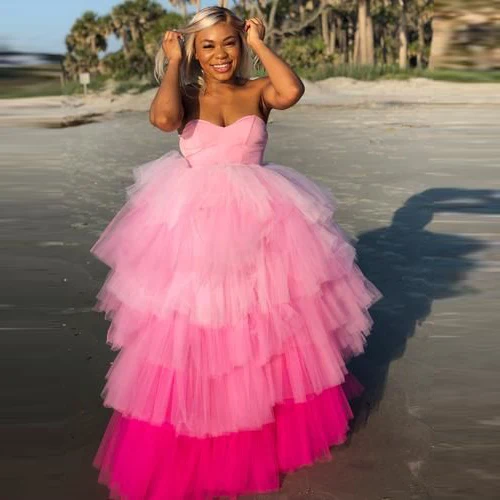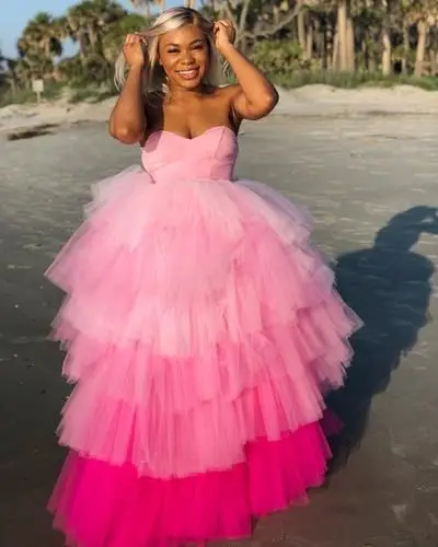 Розовое Пышное Тюлевое платье с оборками Сексуальные Платья для бер...