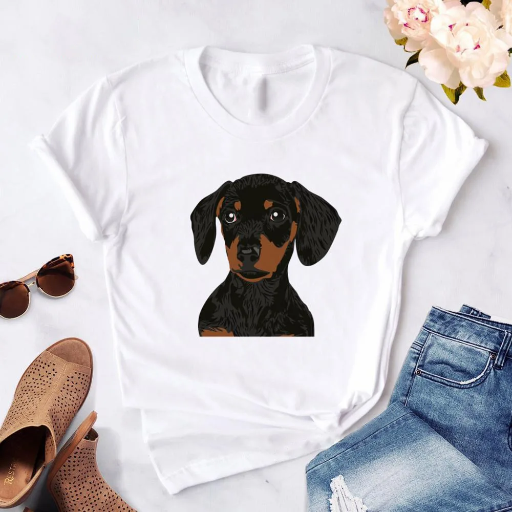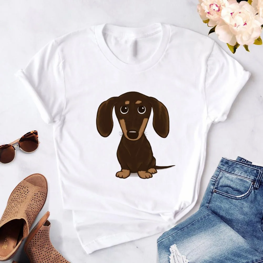 Женские футболки с рисунками из мультфильмов в виде таксы Kawaii уличная футболка с героями мультфильма Щенячий Harajuku футболка с рисунком с короткими рукавами, женская одежда