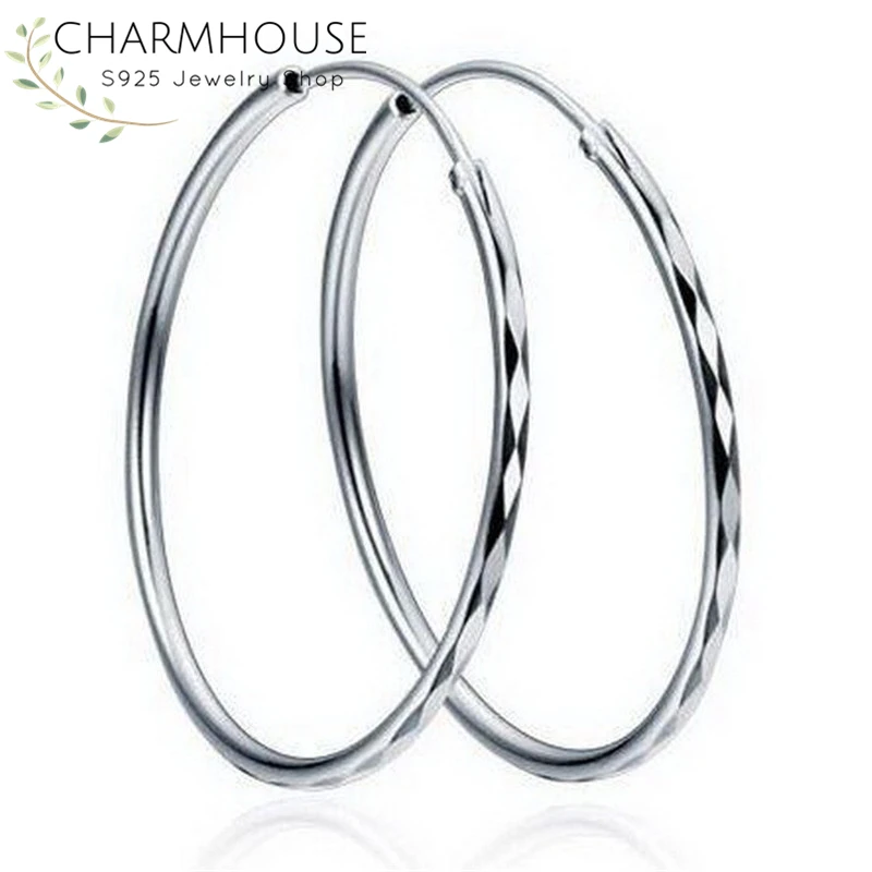 Женские серьги-кольца из чистого серебра S925 пробы, большие, 30405060 мм