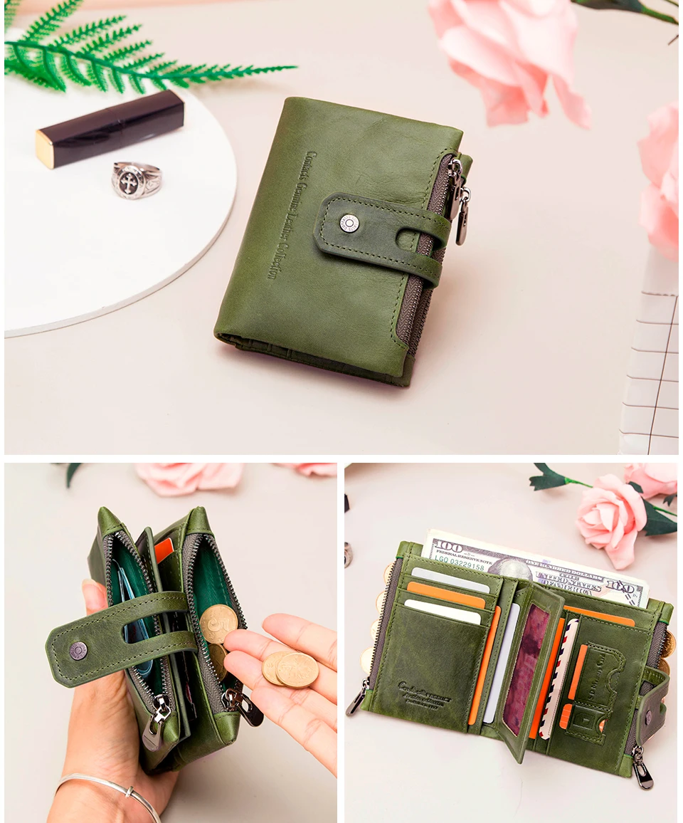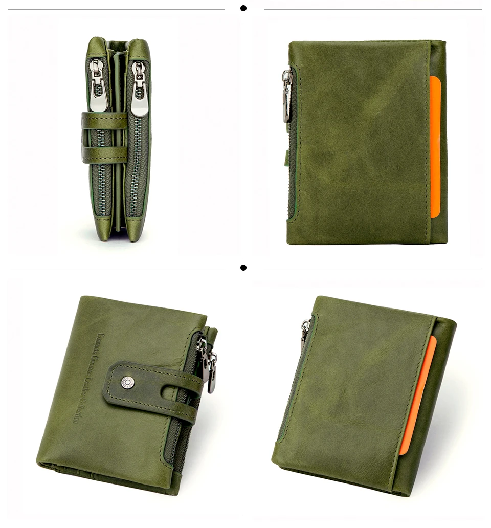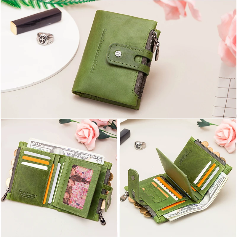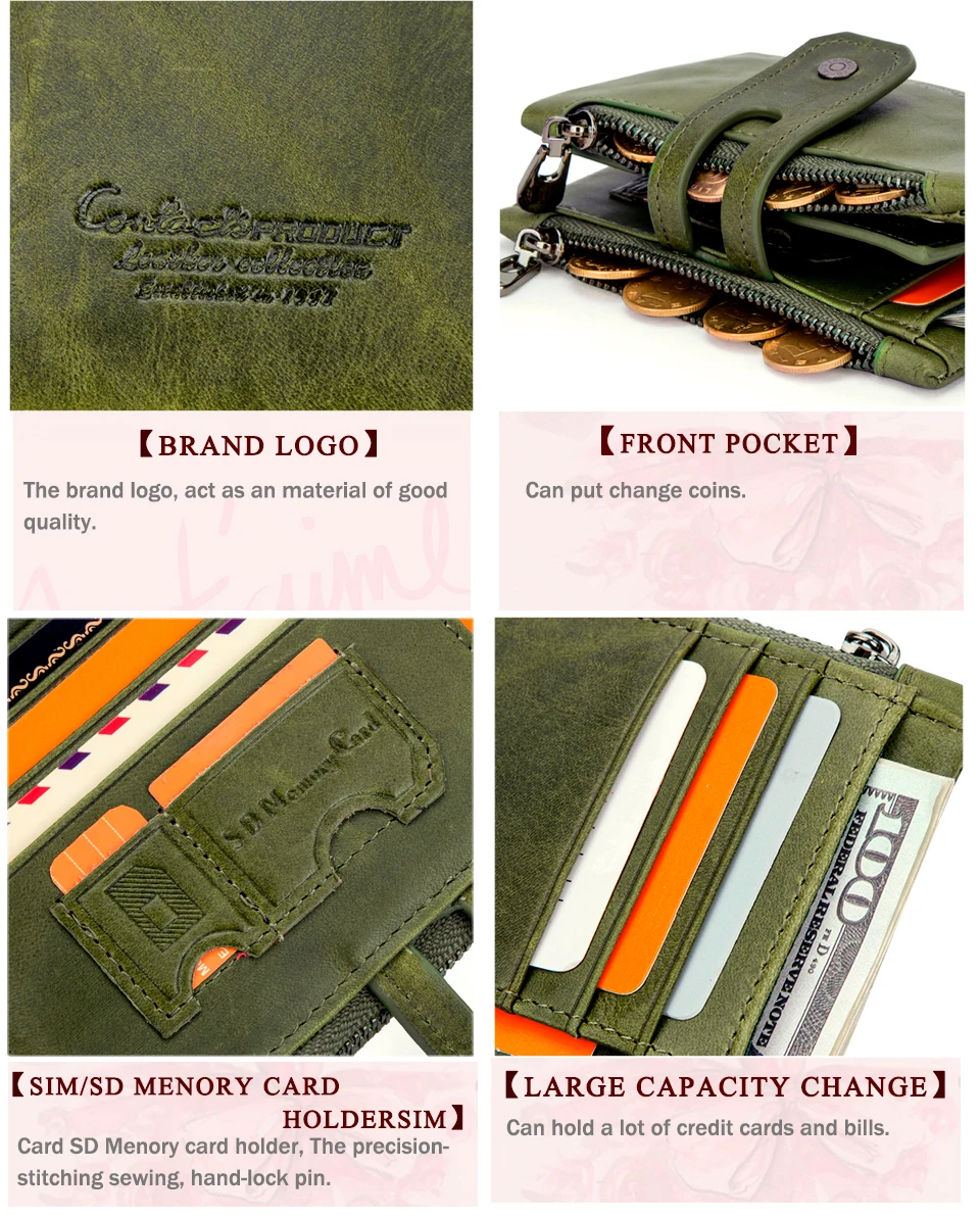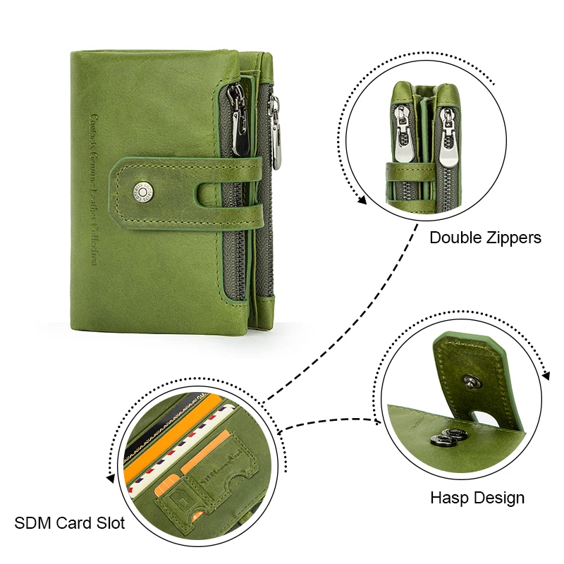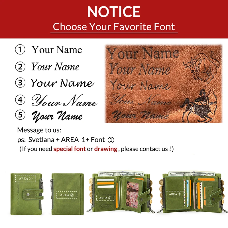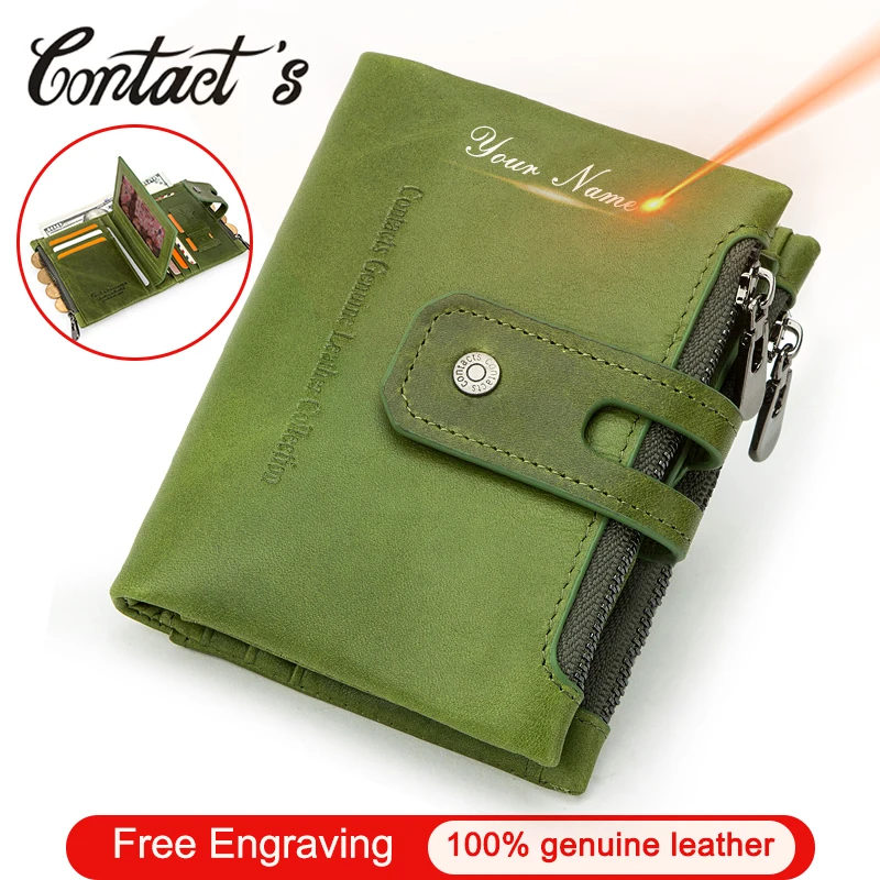 Кошелек из 100% натуральной кожи с бесплатной гравировкой для женщин и мужчин, маленький бумажник с двойной молнией и монетницей, кредитница