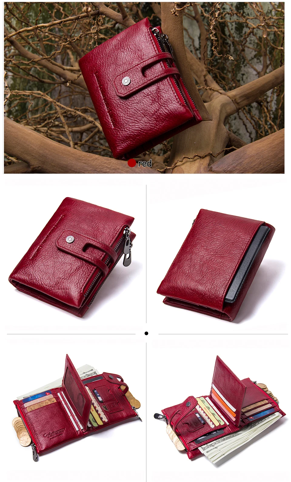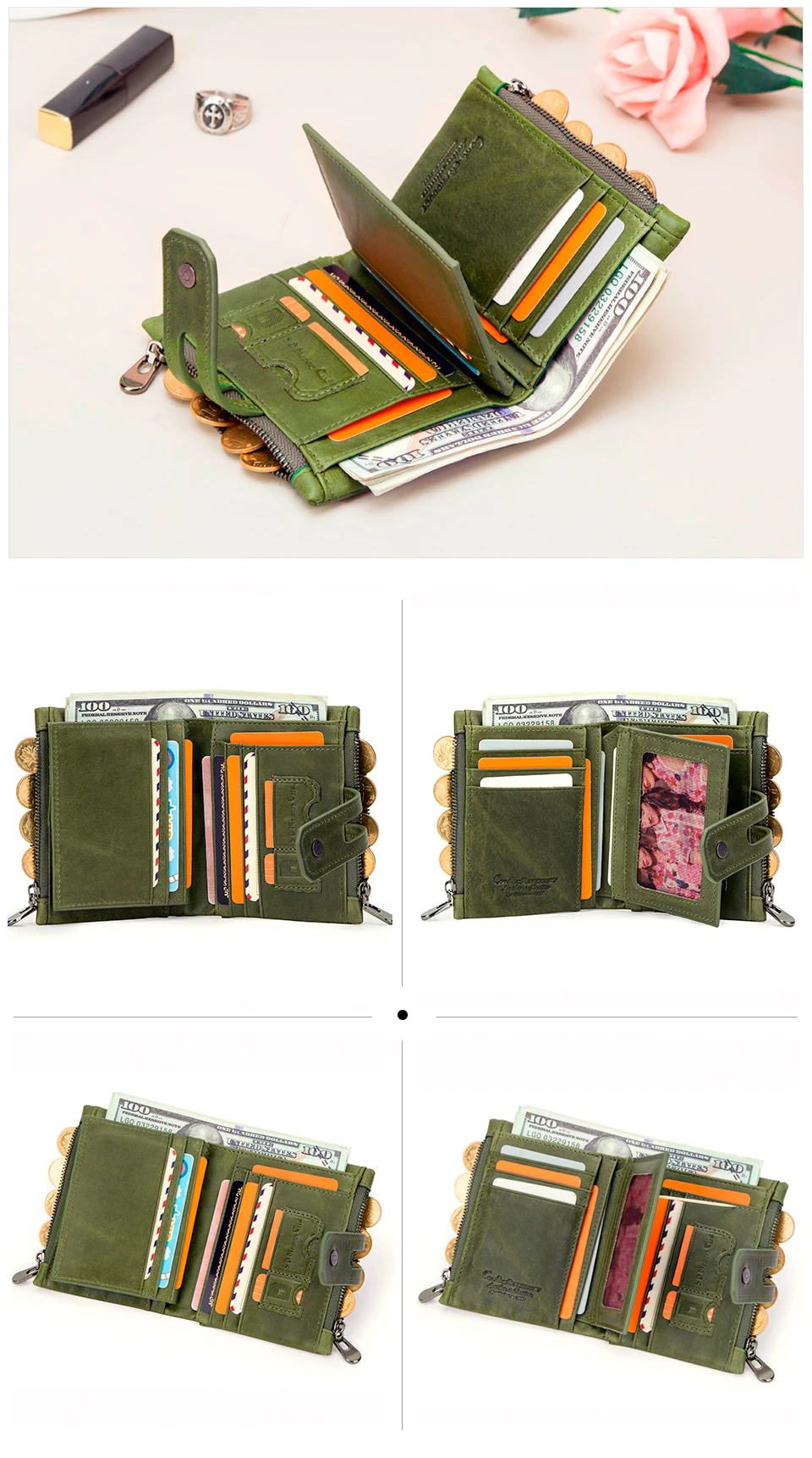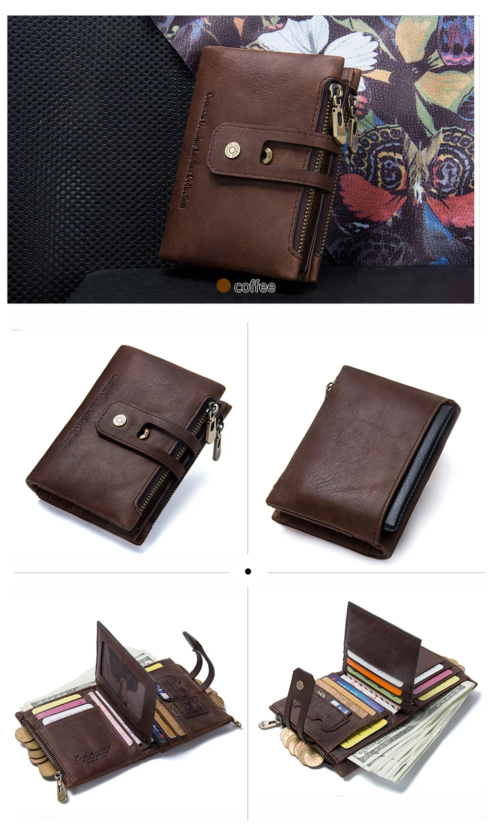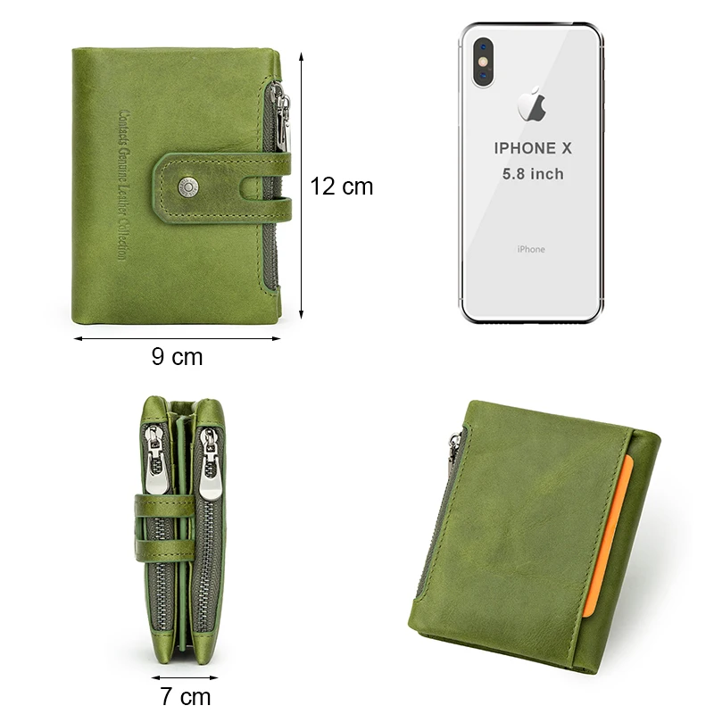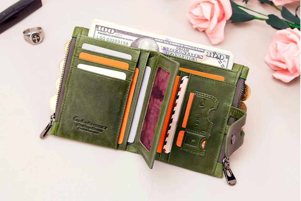 Кошелек из 100% натуральной кожи с бесплатной гравировкой для женщин и мужчин, маленький бумажник с двойной молнией и монетницей, кредитница