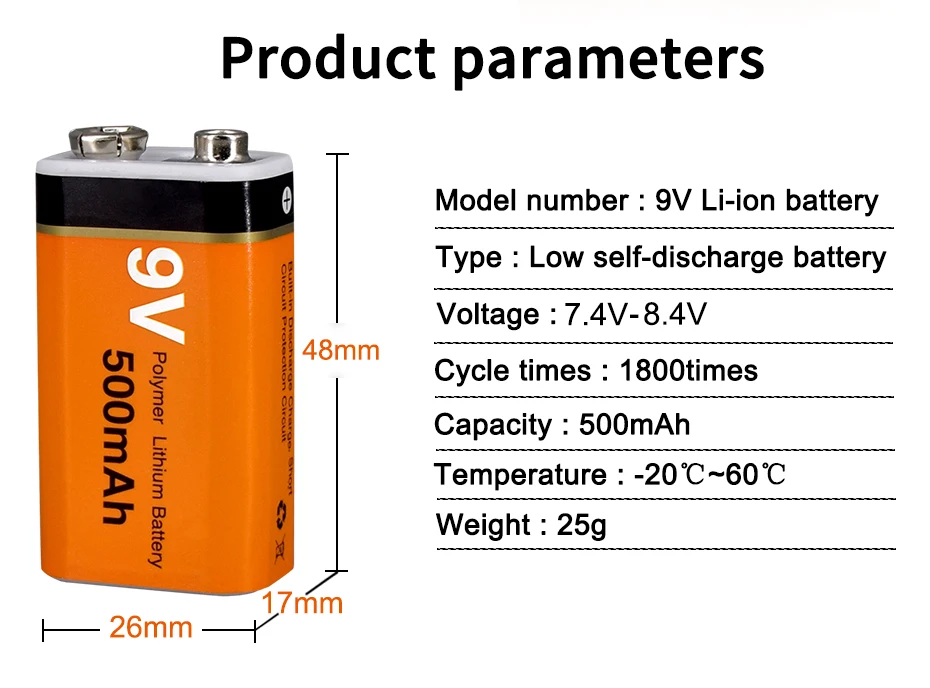 Литий-ионный аккумулятор 9 в 500 мАч, литиевый аккумулятор 9 В для ...