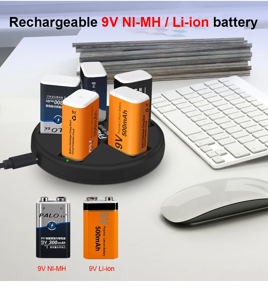 Аккумуляторная батарея PALO 9 В, литий-ионная батарея 9 В 6f22 + за...