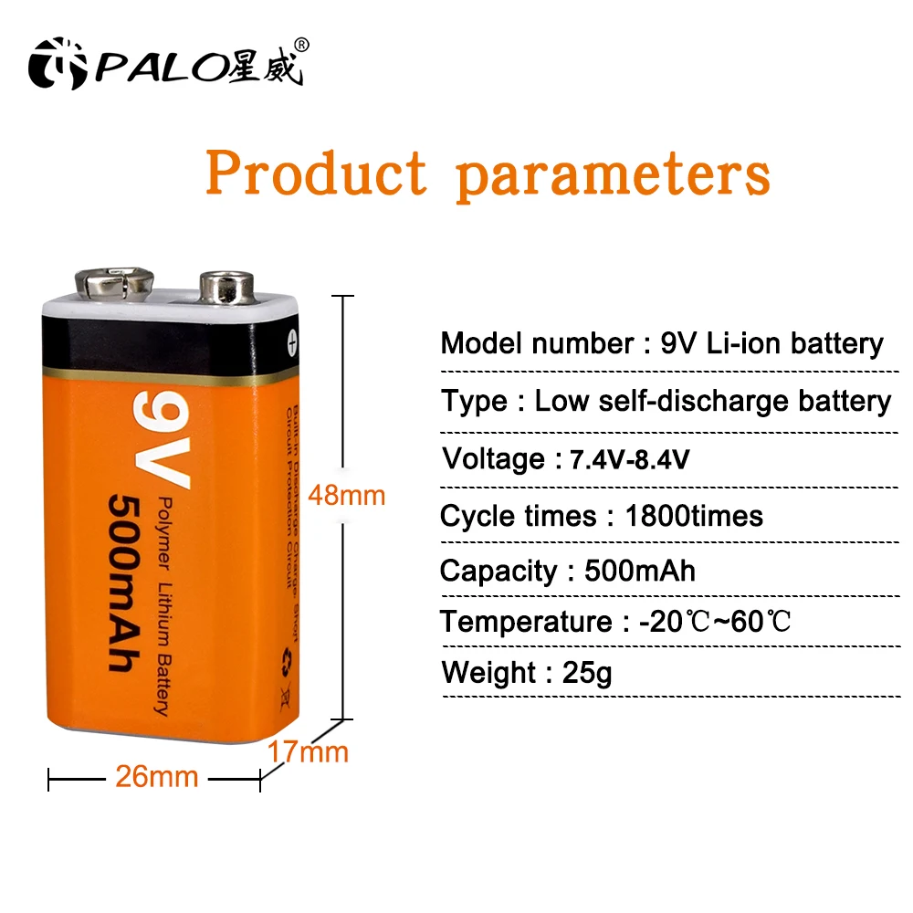 Литий-ионная батарея PALO 9 в 500 мАч 9 В, литиевая аккумуляторная ...