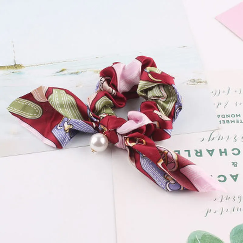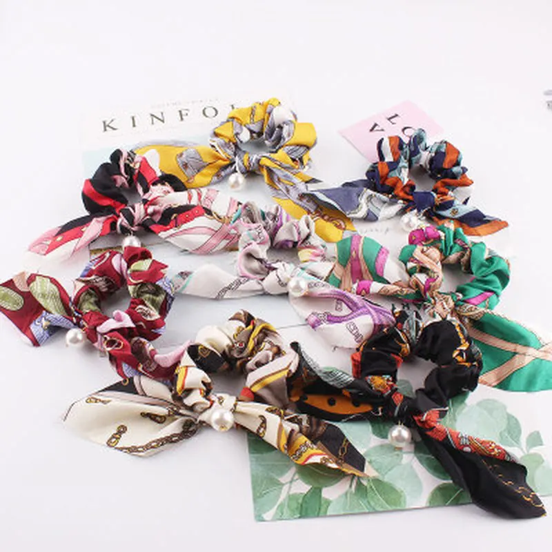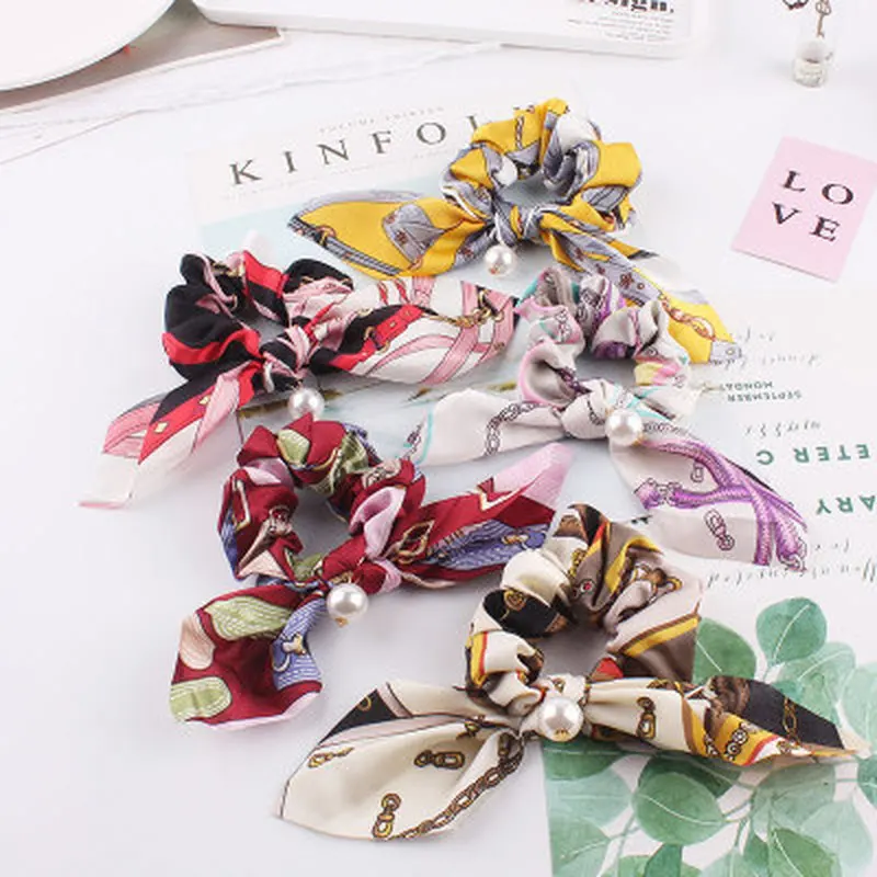 Резинки для волос женские, шифоновые, шелковые, с бантом и жемчугом...