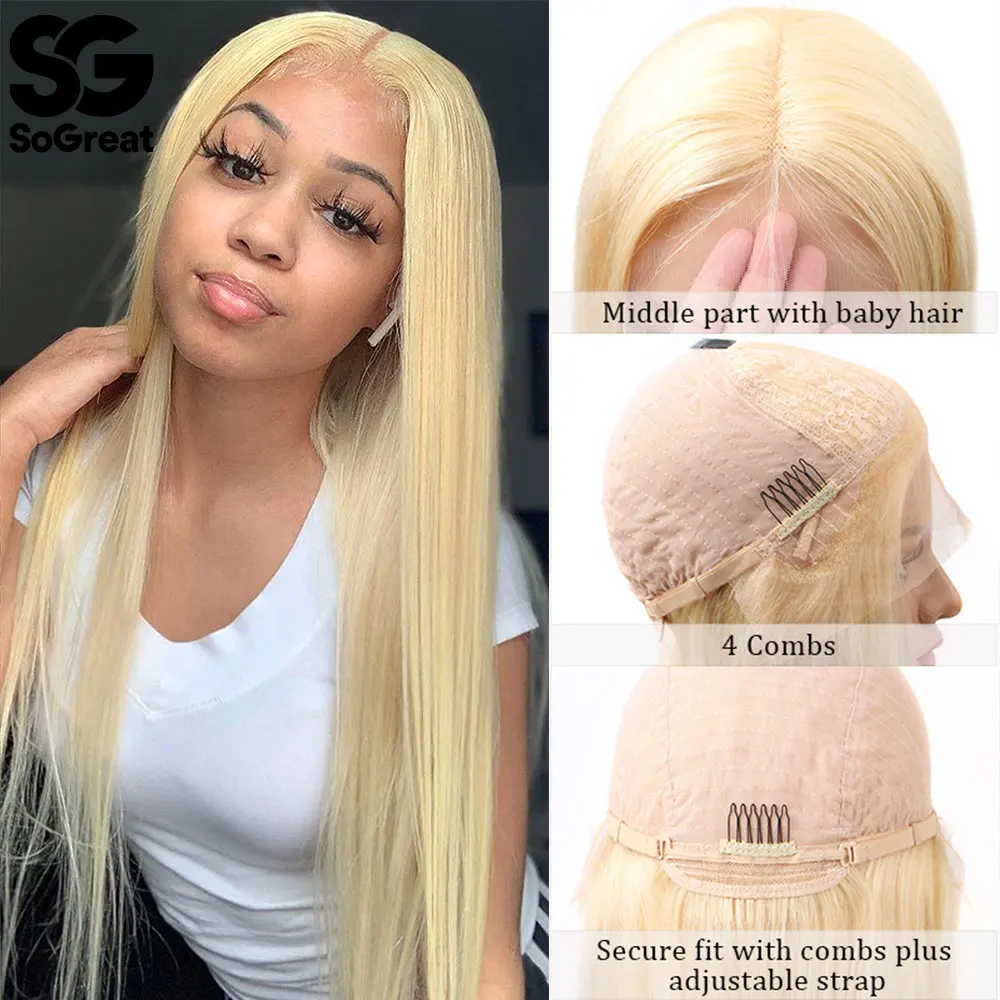 Парик из 613 натуральных волос Блонд, бразильские прямые, предварительно выщипанные, HD, полная сетка, парики из натуральных волос для чернокожих женщин
