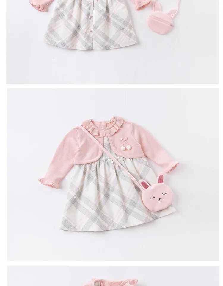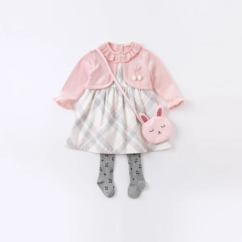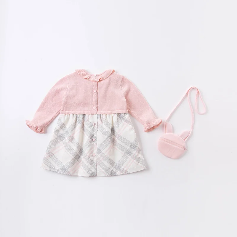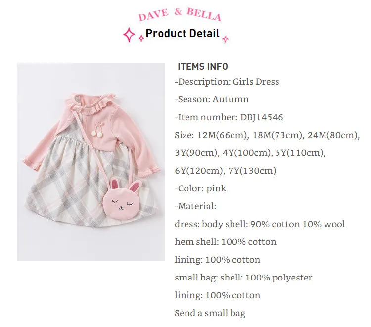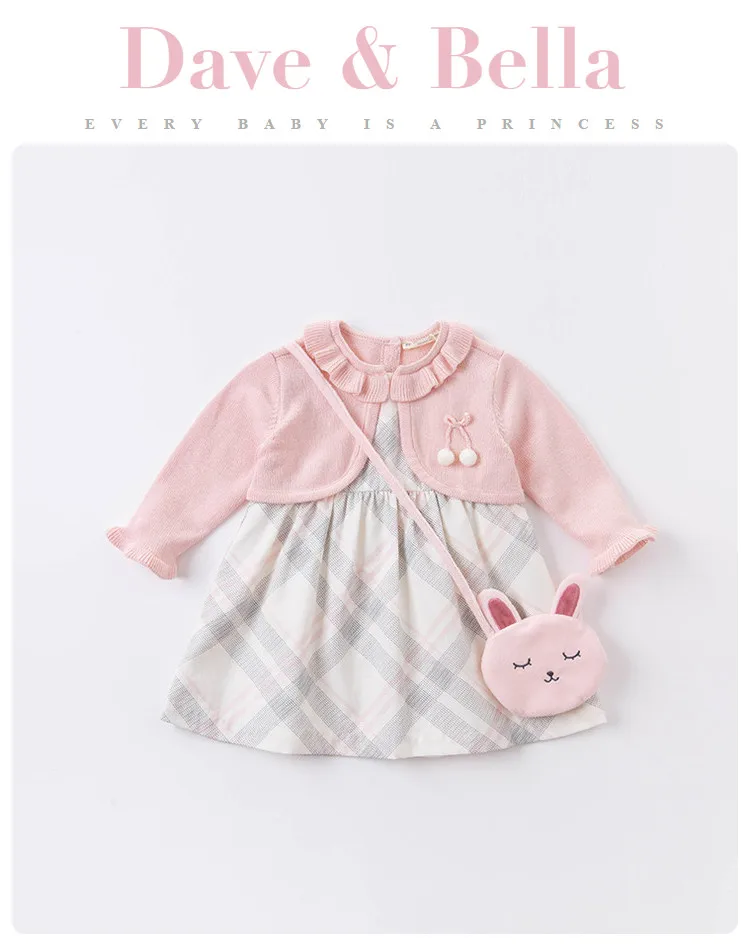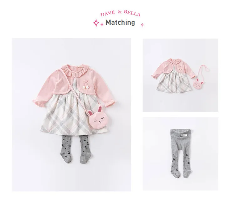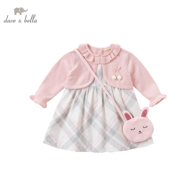 DBJ14546 dave bellaосеннее модное платье в клетку с бантом для маленьких девочек, вечерние платья с маленькой сумкой детская одежда в стиле лолита из 2 предметов