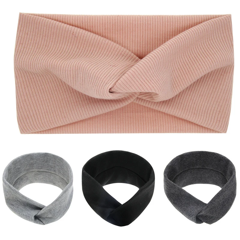 Женская повязка на голову с узлом, эластичная мягкая однотонная лента с перехлёстом, аксессуар для волос, 2020