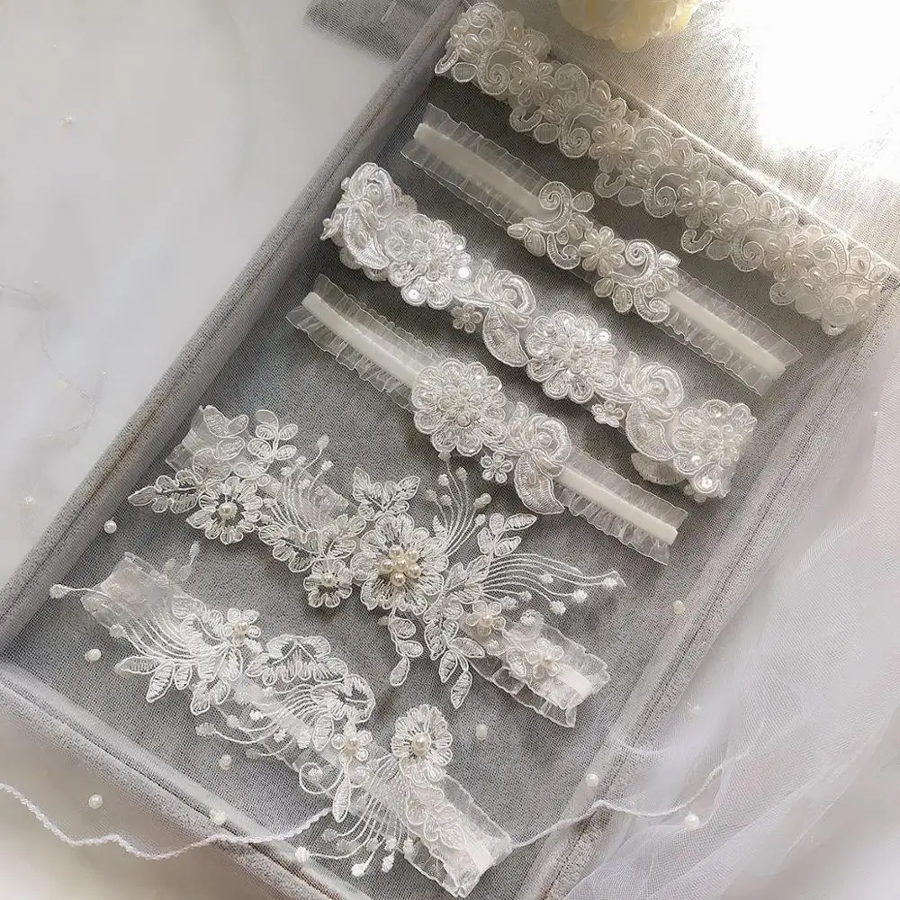 Свадебная подвязка цвета слоновой кости с цветочным бисером и вышивкой, сексуальное кольцо для невесты