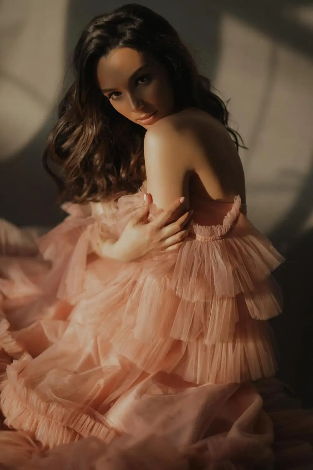 Очаровательные длинные фатиновые платья для беременных для фотосесс...