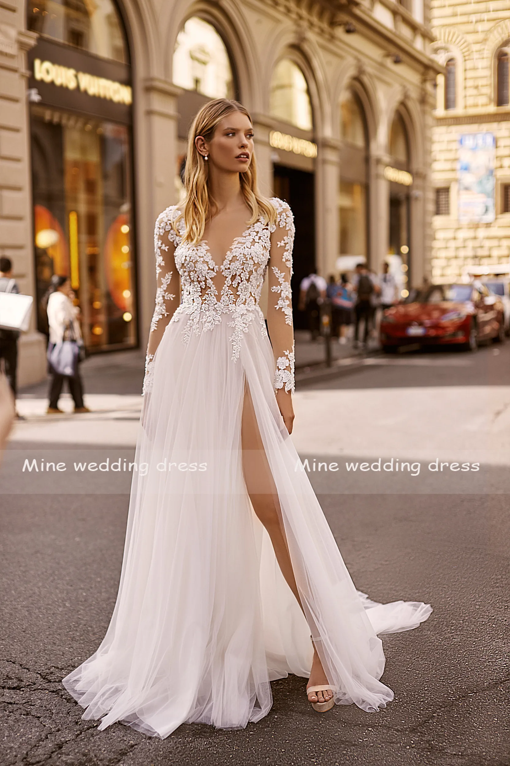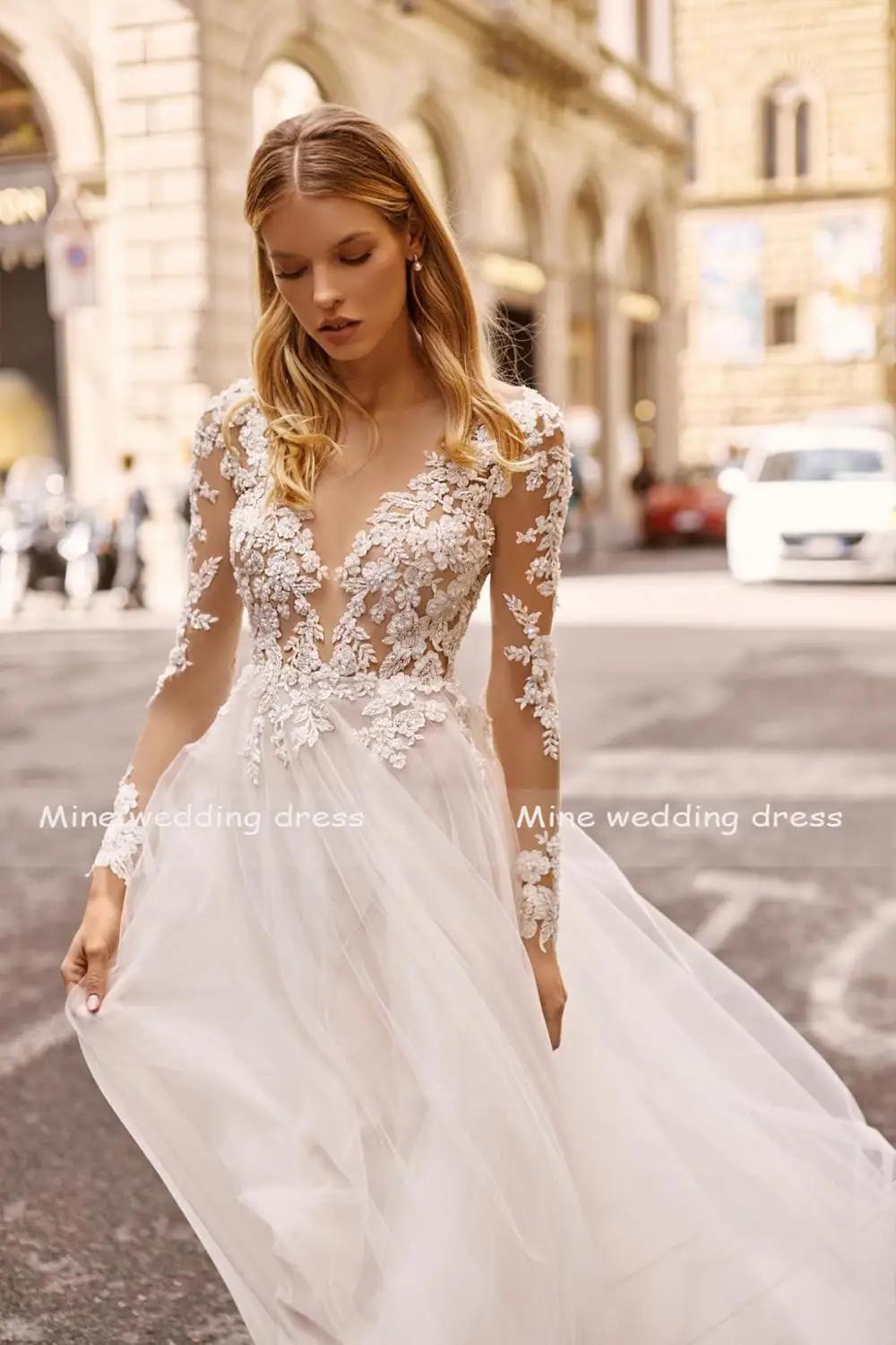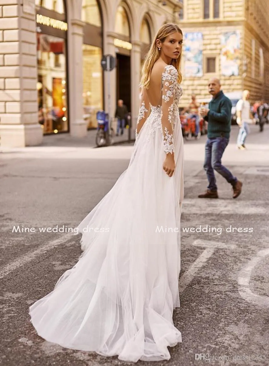 Женское Прозрачное платье в пляжном стиле It's yiiya, белое кружевное платье-трапеция с открытой спиной, V-образным вырезом, длинными рукавами и аппликацией на лето 2020