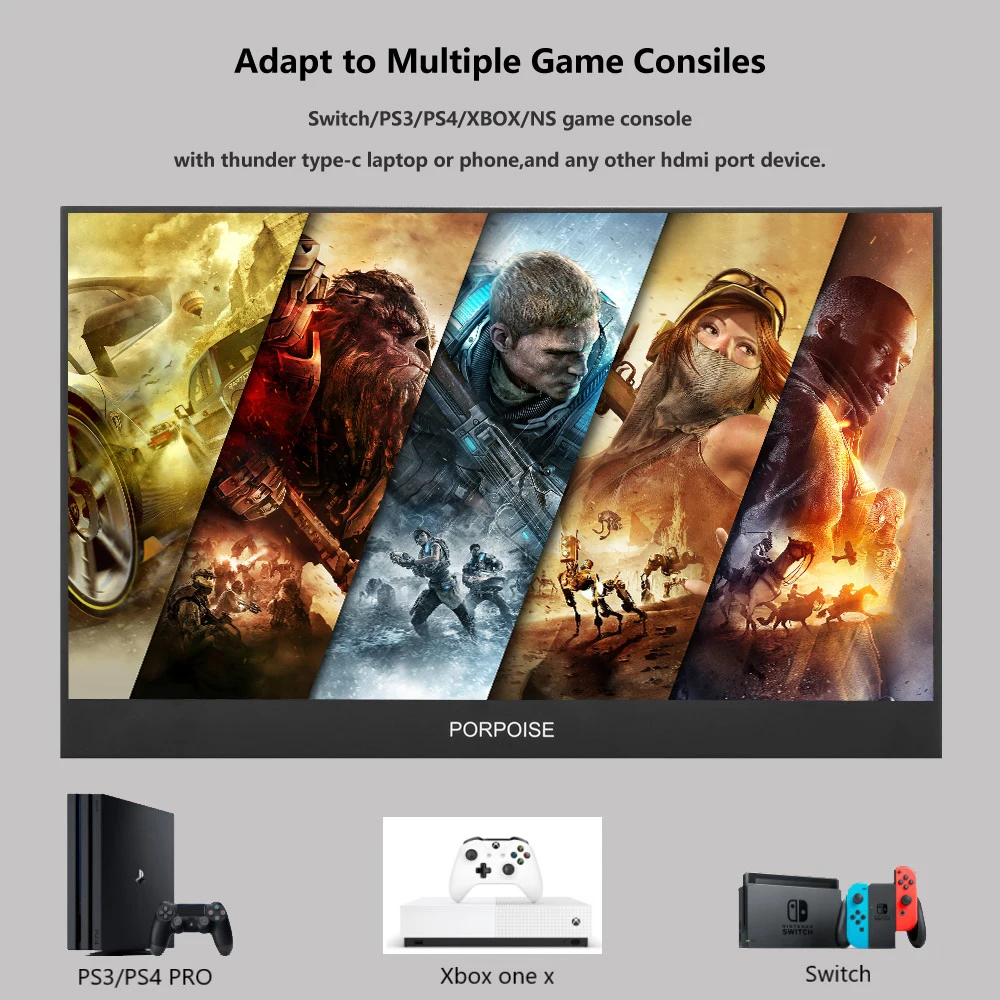 Монитор PORPOISE hd, 13,3-17,3 дюйма, usb type c hdmi, для ноутбуков, xbox,switch и ps4, портативный игровой монитор